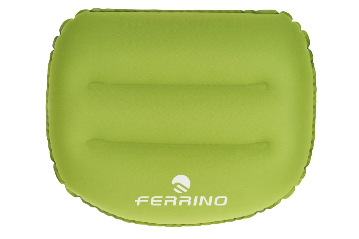 Práctico cojín hinchable de poliéster elástico suave, con válvula dotada de membrana de seguridad que permite el inflado y desinflado rápidos. Funda de tamaño reducido.