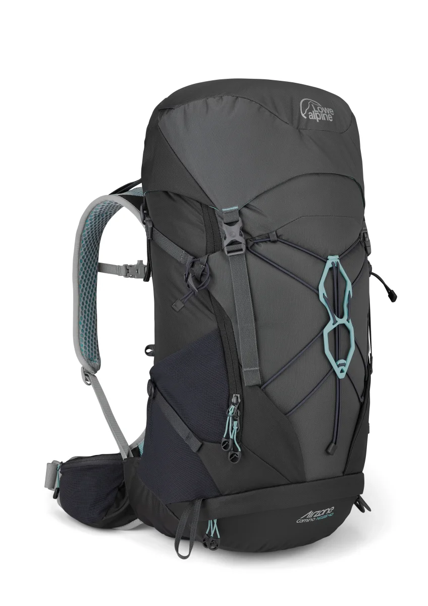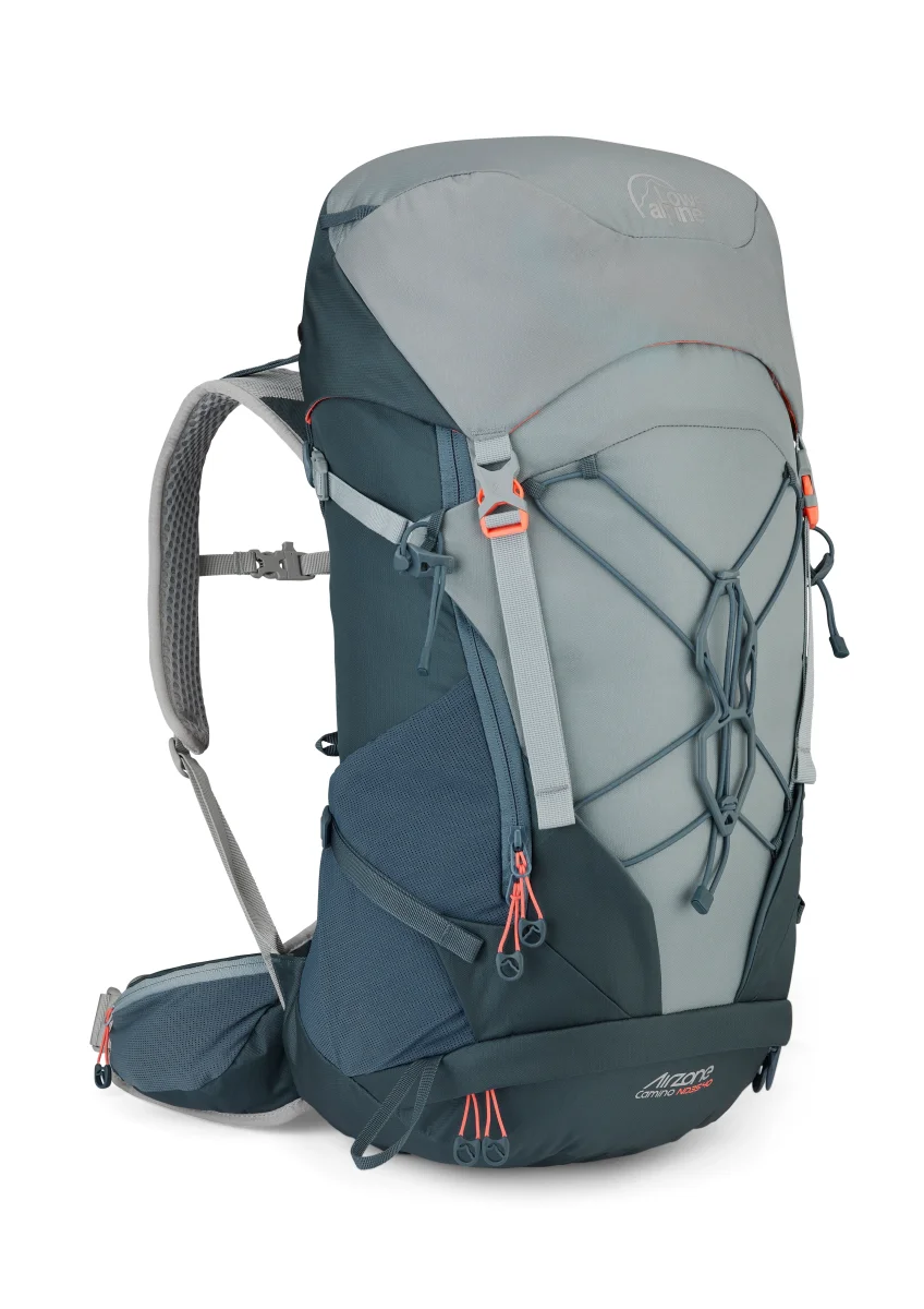 Mochila de senderismo con ventilación, con sistema de transporte fijo AirZone™ y ajuste específico para mujeres. Tiene una tapa ampliable, almacenamiento para cuerda SpiderPlate, amarre para piolet y fijación para bastones de caminar.