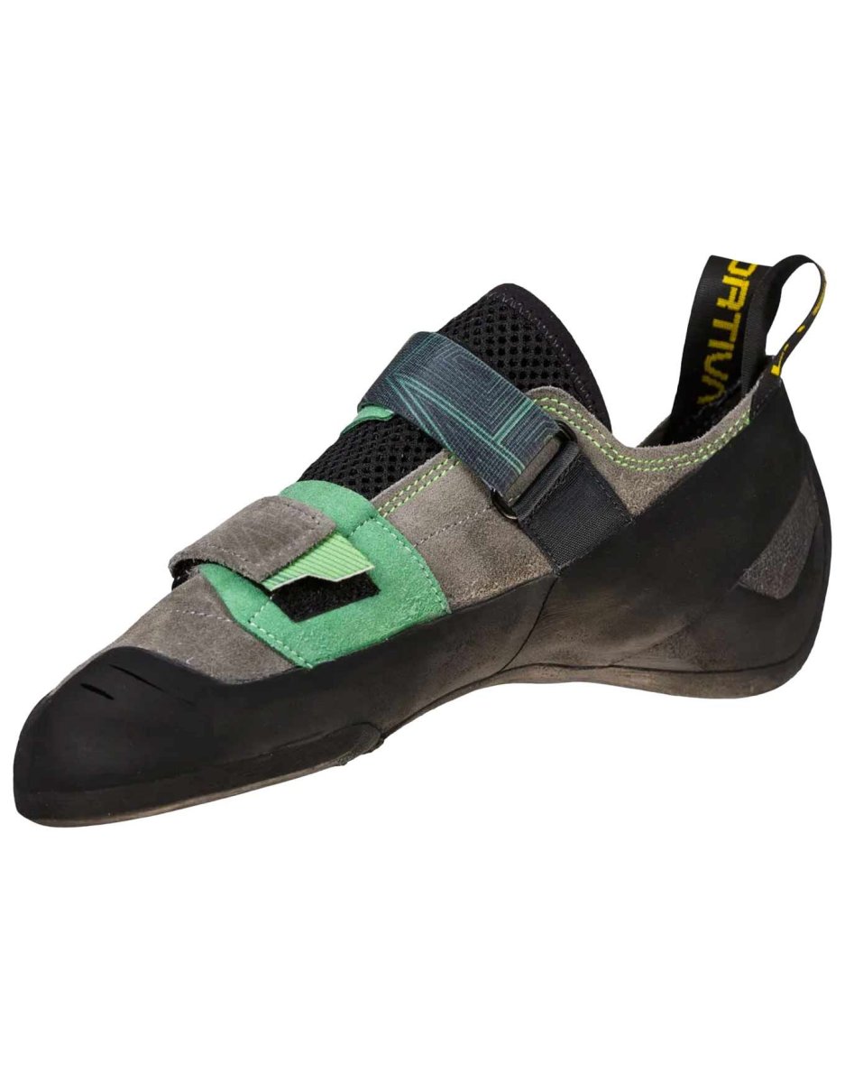 Pie de gato de doble cierre de gancho y bucle ideal para principiantes y para todos los escaladores que necesitan un producto que sea cómodo y rápido de calzar. Perfecto para usar en rocódromo.