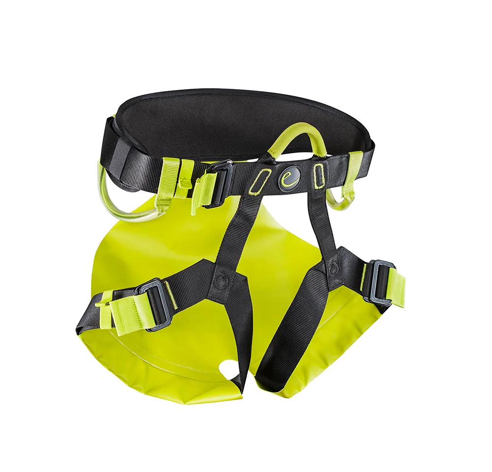 El arnés Irupu de Edelrid, es un producto que sirve para barrancos, tiene un protector reemplazable que te sirve para evitar las rozaduras. Todas las hebillas son de cierre y de apertura rápida.