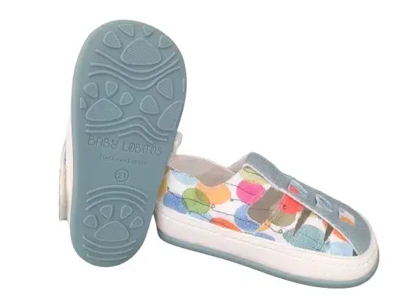 Las sandalias globos de Baby Lobitos os transportarán, tanto a tu peque como a ti, a los días eternos de verano. Estas sandalias respetuosas infantiles serán las preferidas de niños y niñas. ¿A qué peque no le gustan los globos?
