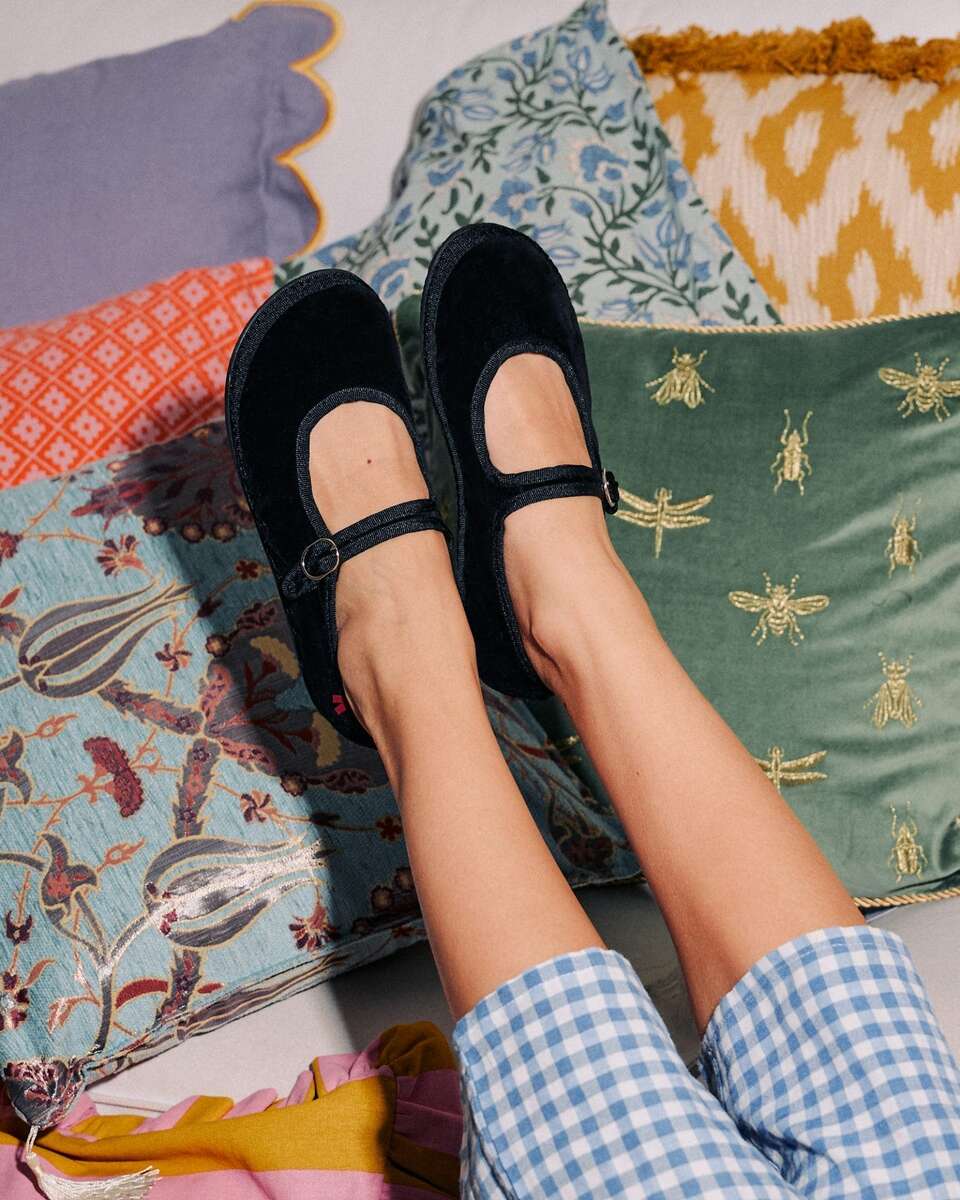 Material: Exterior 100% terciopelo de algodón de alta calidad, con interior de algodón. La parte interior está hecha de material sintético. Suela y plantilla de material reciclado. La suela está cosida al estilo veneciano.