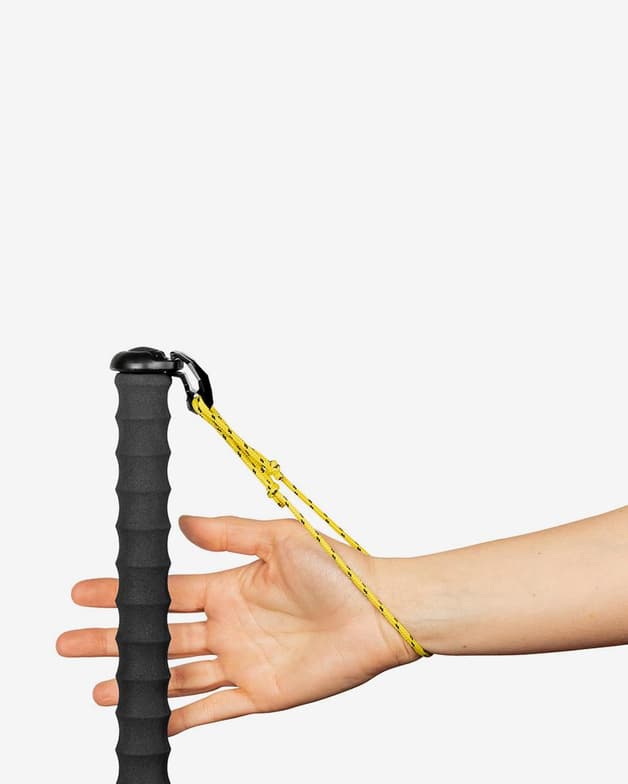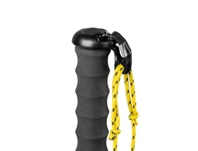 Su largo mango ergonómico de espuma le permite mover la mano en las distintas posiciones de sujeción. Tiene una correa de cordón mínima ajustable y el innovador sistema SSR (Strap Safety Release): está apretado cuando se tira hacia abajo o hacia afuera, pero se suelta cuando se tira hacia arriba (más de 90°).