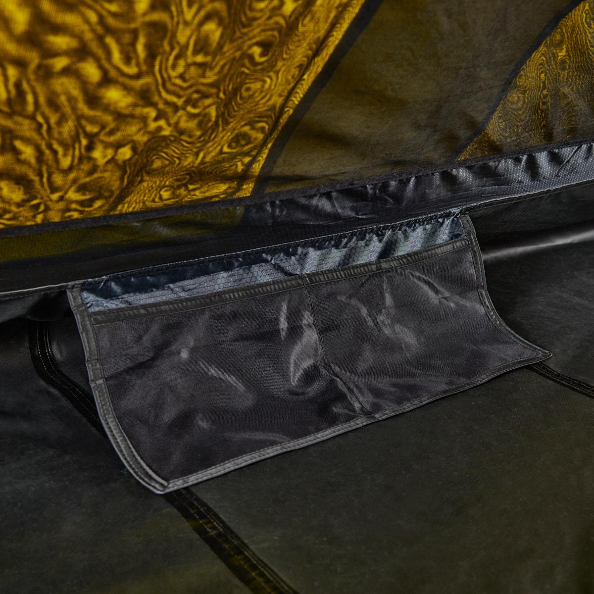 Su construcción de doble techo evita la condensación interior, asegurando un ambiente seco y confortable en todo momento. Las costuras termoselladas proporcionan una impermeabilidad adicional, manteniéndote protegido de la lluvia y la humedad. El armazón de fibra de vidrio de Ø16 mm garantiza estabilidad y resistencia en diversas condiciones climáticas.