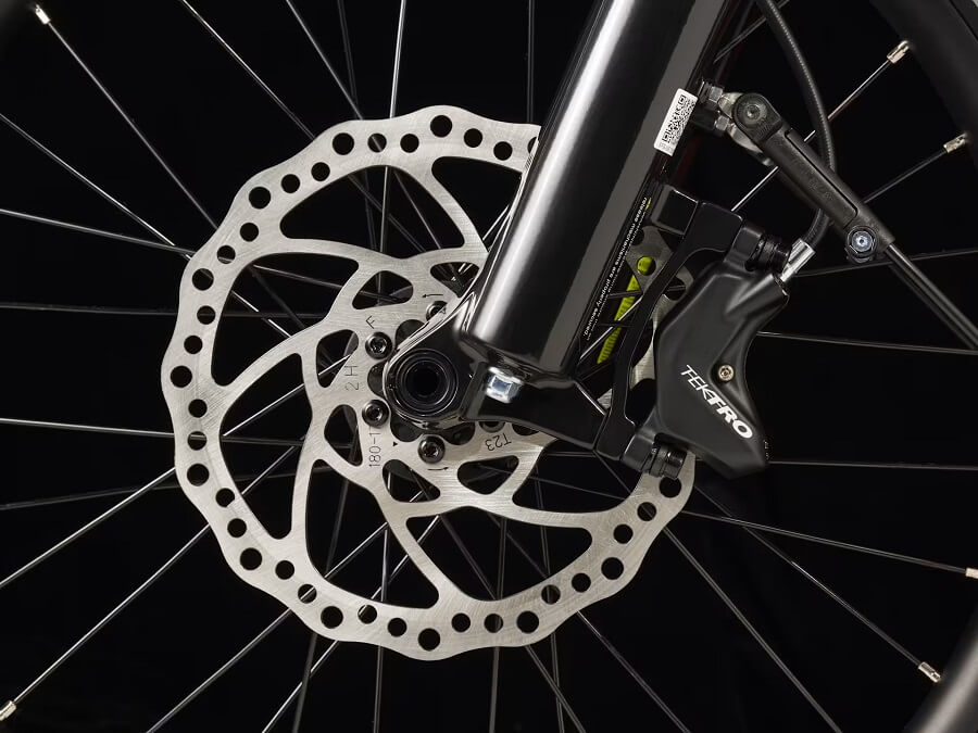 - Juego de frenos: Disco hidráulico de 4 pistones Tektro HD-T737 / Disco hidráulico de 4 pistones Tektro HD-E737