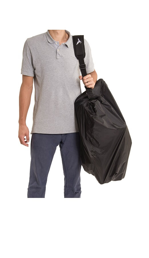 La Carry-on es una funda de peso ligero que se desliza sobre tu bici y la puedes llevar a modo de bolso compacto con una bandolera sobre tu hombro. El peso de la bici queda sujeto por unas correas internas y la funda exterior es ligera y fácilmente comprimible. Es perfecta para trenes, metro, o autobuses que requieren que empaquetes la bicicleta. Cuando no utilices la Carry-on llévala en su propia bolsa sujeta al sillín de tu bicicleta.