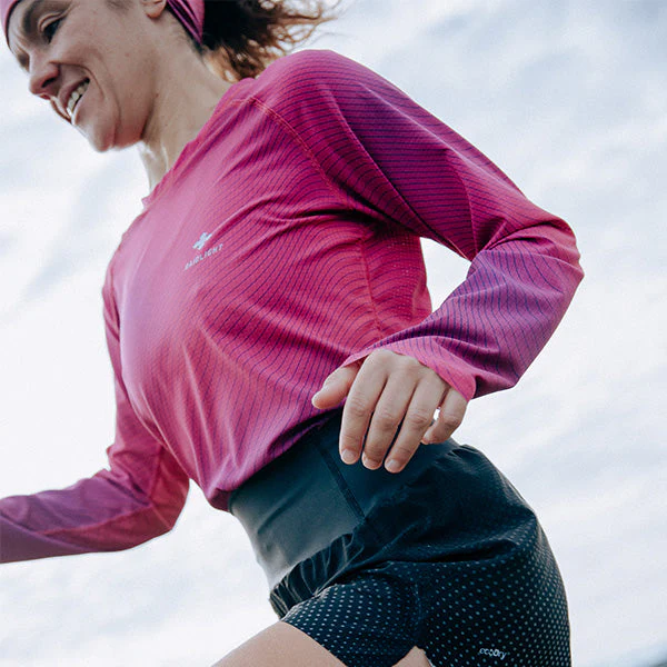 La camiseta de trail de manga larga Warm EcoDry Made In France para mujer promete el máximo confort. Diseñado en un material reciclado microperforado, ligero y bielástico, ofrece un secado rápido y muy transpirable.