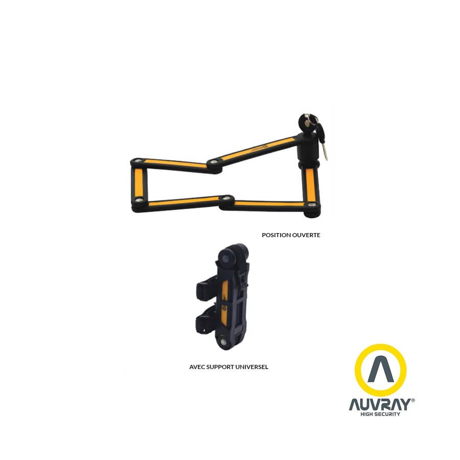 El candado articulado Auvray City Lock de 85 cm es un antirrobo fácil de usar que se despliega y se guarda fácilmente en el soporte preparado (incluido) para el cuadro.