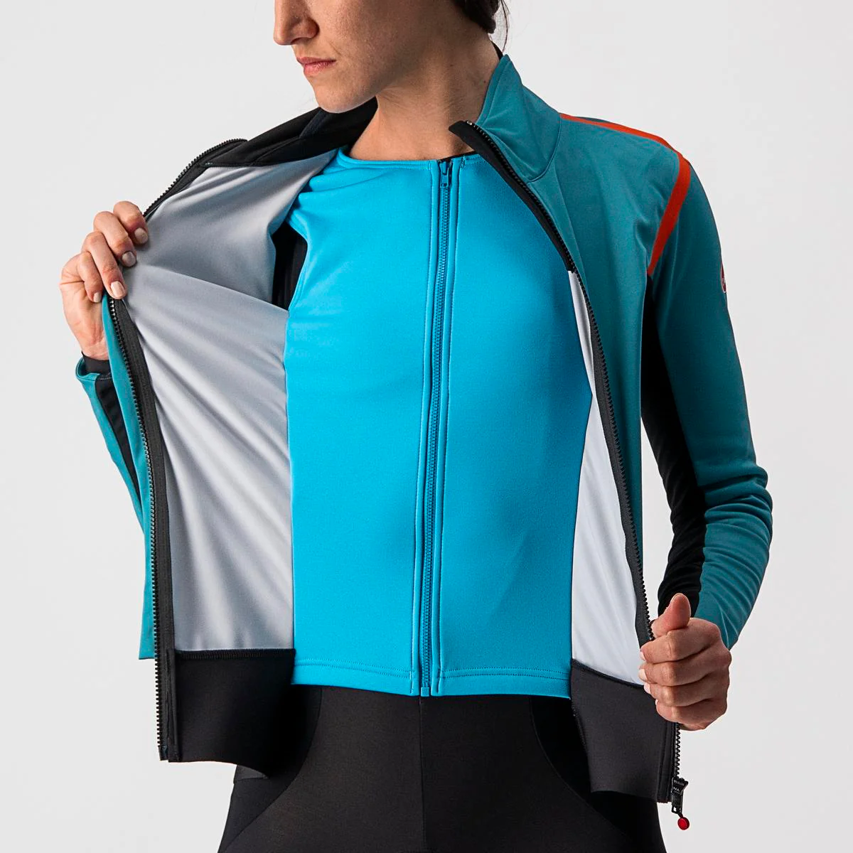 - Doble capa en los puños para integrar los guantes y evitar la entrada del aire frío y del agua de la lluvia