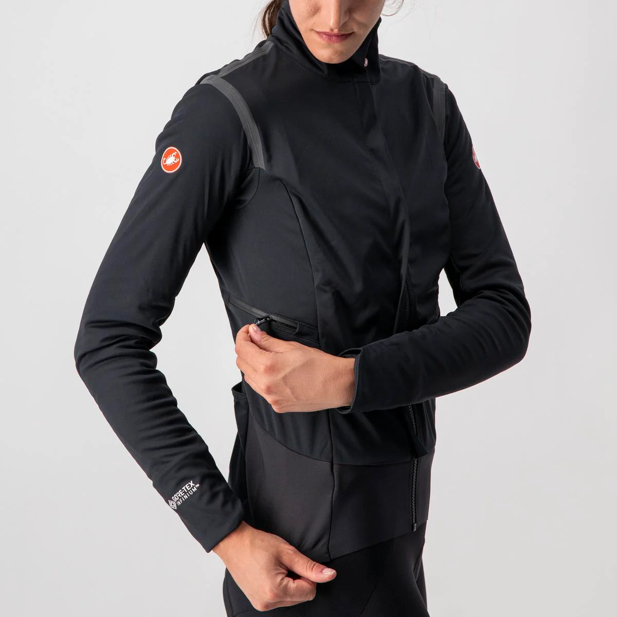 - Tejido GORE-TEX INFINIUM™ WINDSTOPPER® 150 para garantizar protección cortaviento, elevada transpirabilidad y efectiva protección contra la lluvia