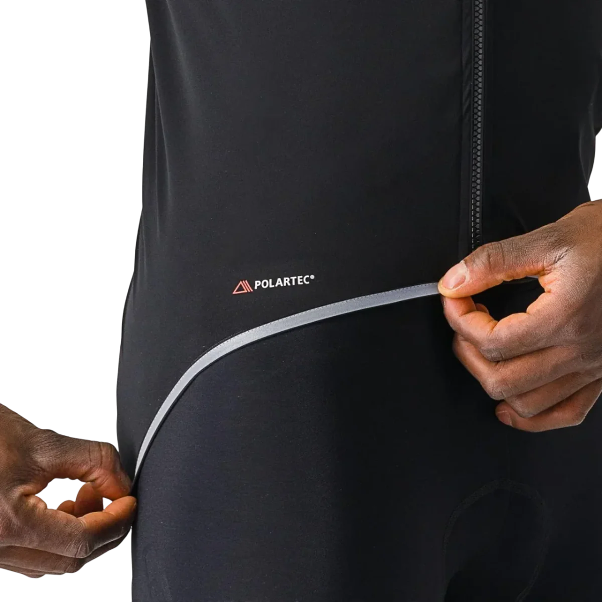 - Tejido Polartec® Power Shield™ RPM, elástico y ajustado, protege de la intemperie con 2 capas