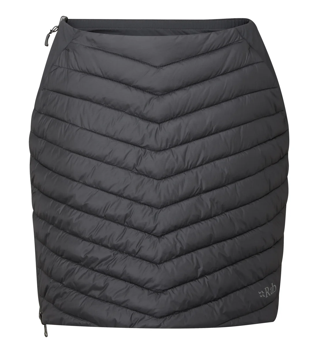 La falda de nieve reversible Rab QIP-12 Black/Graphene para mujer es versátil, compacta y cuenta con una cintura elástica profunda. Hecha con tela reciclada, es ideal para senderismo y uso diario elegante.