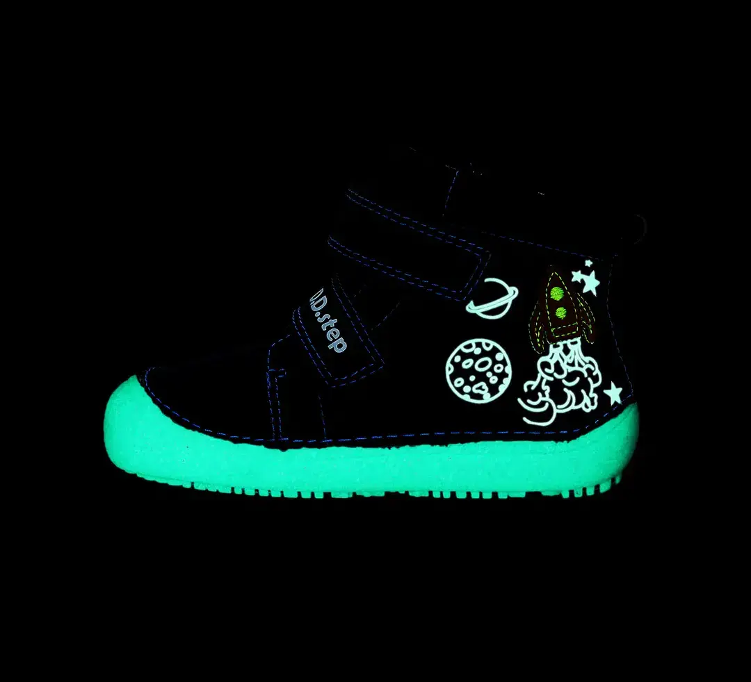 Si a tu peque le gustan las cosas relacionadas con el espacio y los cohetes, no puedes perderte estas botas barefoot infantiles de DD Step. Además la suela de estas botas respetuosas brillan en la oscuridad. ¡Tu peque estará encantado/a con ellas!