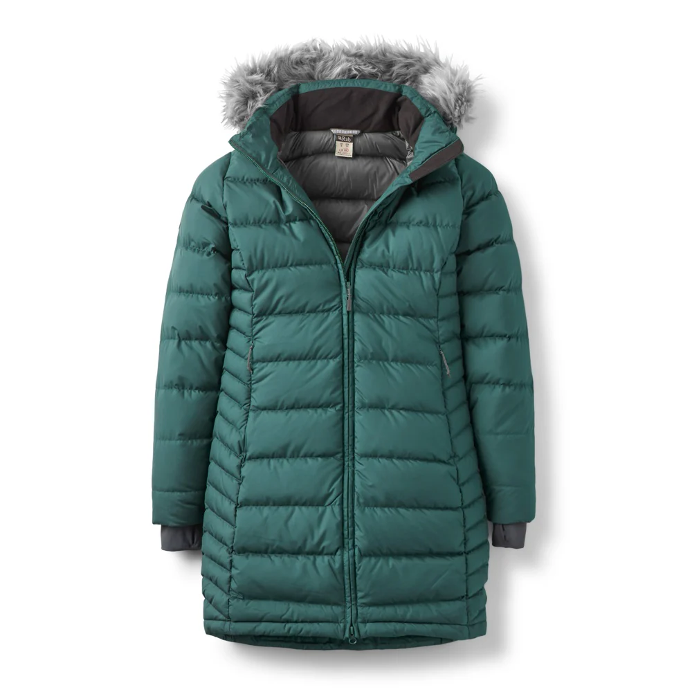 Este abrigo acolchado para mujer es una prenda diseñada para ofrecer calidez y protección en climas fríos. Está confeccionado con un tejido exterior resistente al agua, ideal para mantener la comodidad durante las inclemencias del tiempo. El relleno de plumón proporciona un excelente aislamiento térmico, asegurando que el calor corporal se conserve eficazmente.