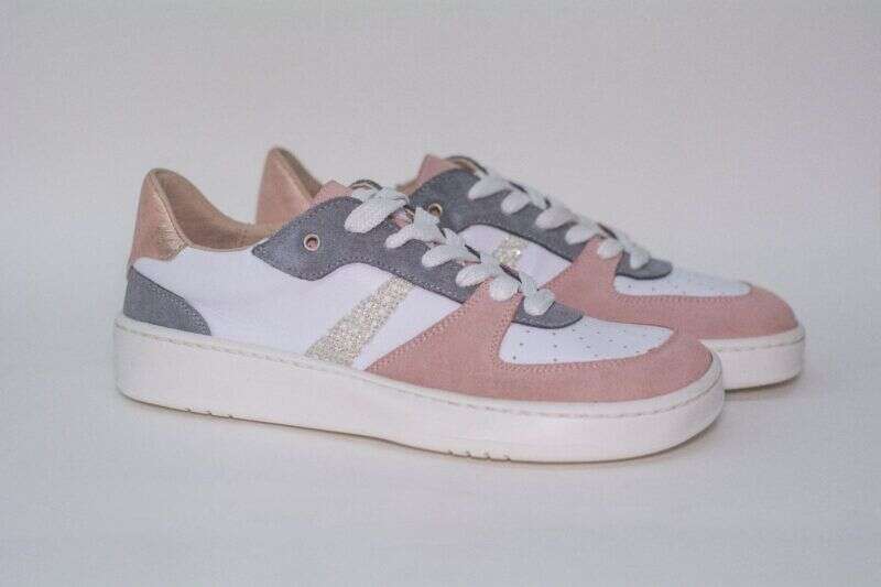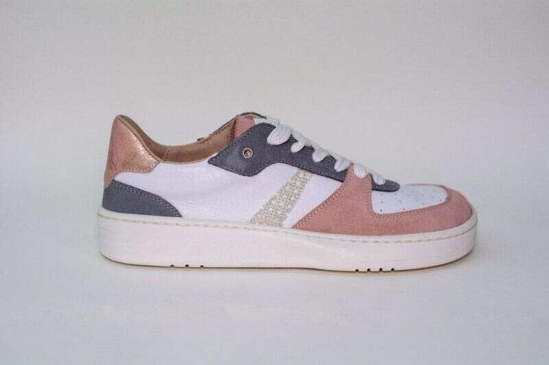 Color: Blanco con detalles en rosa y gris.