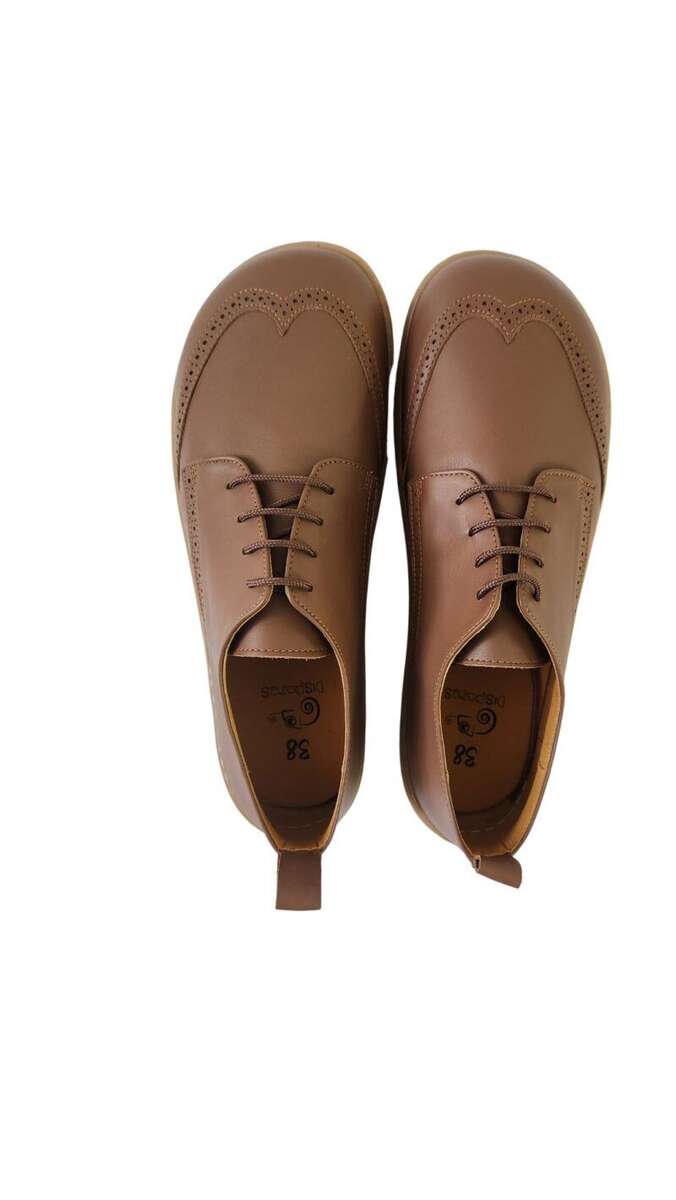 Si estás en la búsqueda de unos zapatos respetuosos para llevar al trabajo o eventos no puedes perderte los zapatos Oxford en color marrón de la marca Dispares. Zapatos barefoot con estilo clásico pero que respetan los pies. Olvídate del dolor de pies de llevar un calzado rígido y abraza la sensación de caminar descalza con ellos puestos. En tu trabajo ya no podrán decirte que no utilices barefoot porque no es elegante.
