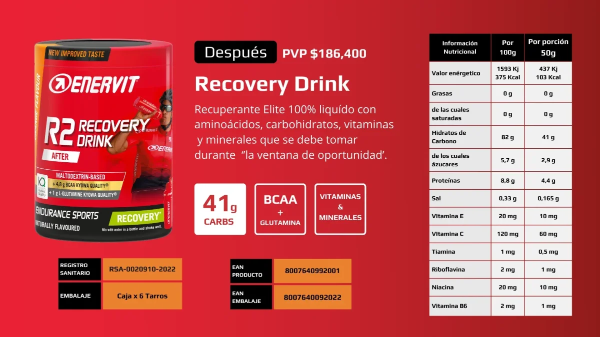 • R2 sport es una bebida recuperante con aminoácidos, vitaminas y minerales que se debe tomar durante ‘’la ventana de oportunidad’. (Justo después de terminar)