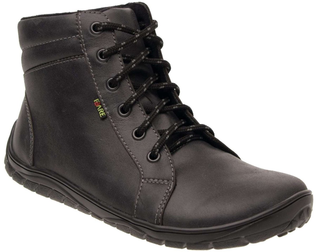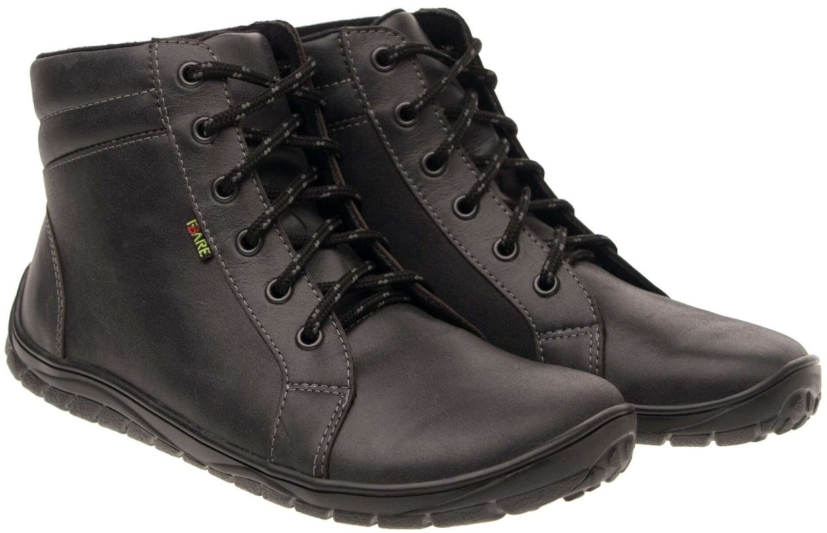 Las botas barefoot para mujer en color negro antracita de la marca Fare Bare son geniales para personas con pie anchos y pie de aleta. Ajustan bien a tobillos finos. Etsas botas son para ti si buscas estar calentita en invierno pero las botas con forro no son tu estilo. Con una suela con agarre extra, estas botas te podrán acompañar tanto en otoño como invierno y primavera.