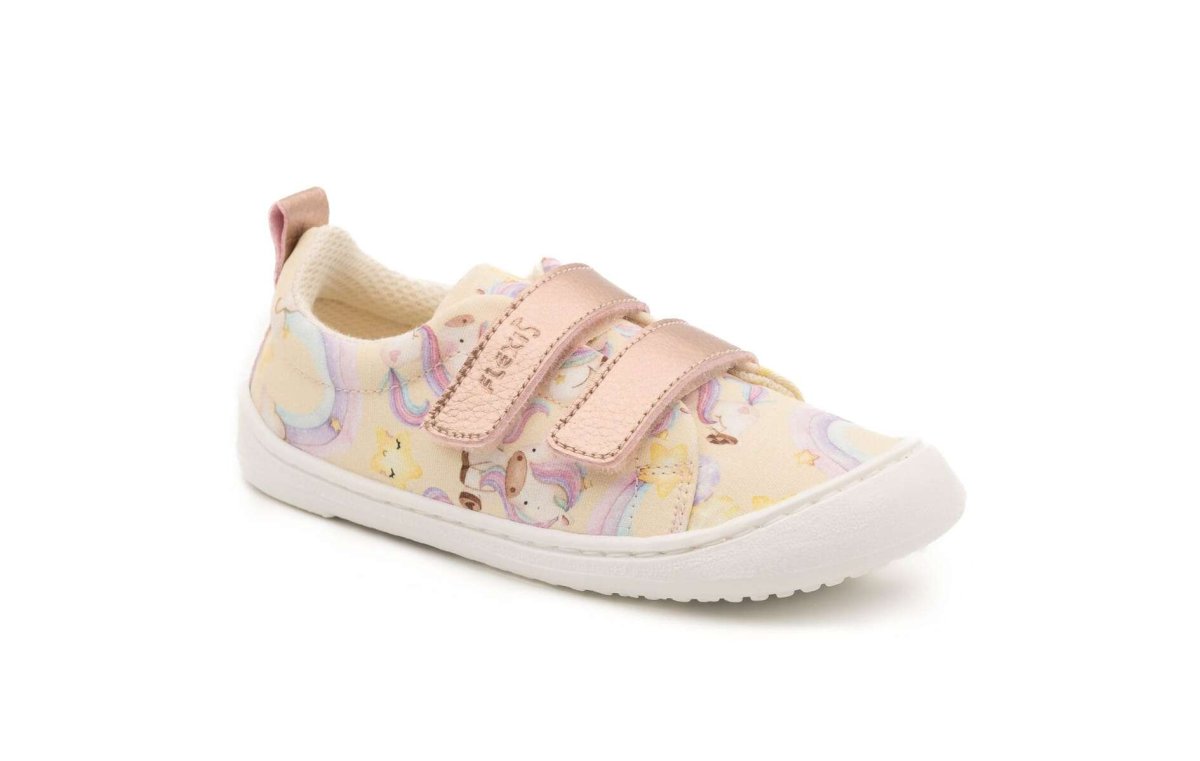 Si a tu peque le encanta la fantasía no puedes perderte las lonas barefoot de unicornios de Flexi Nens. Lonas respetuosas infantiles con velcros en color afrodita, perfectas para uso diario. Estas zapatillas son geniales para primavera, verano y principios de otoño. Tu peque no querrá quitárselas de lo bonitas y cómodas que son.