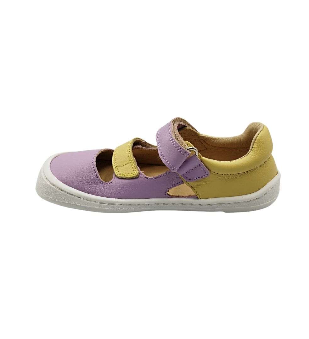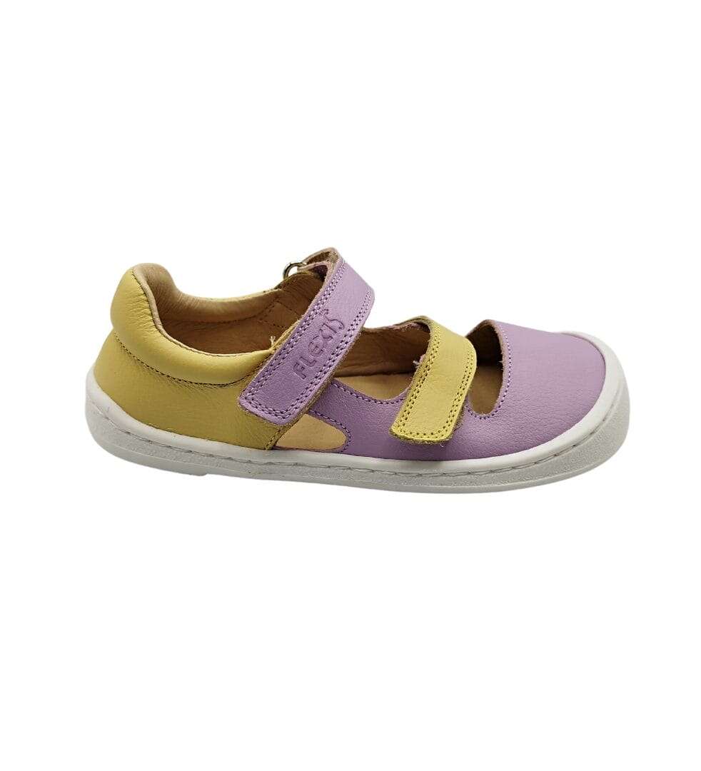 Si tu peque tiene pie medio-ancho y buscáis unas sandalias respetuosas para este verano, no podéis perderos las sandalias barefoot 9030R de Flexi Nens. Sandalias minimalistas infantiles para uso diario de color lila y amarillo. Tu peque no querrá quitárselas durante sus aventuras veraniegas.