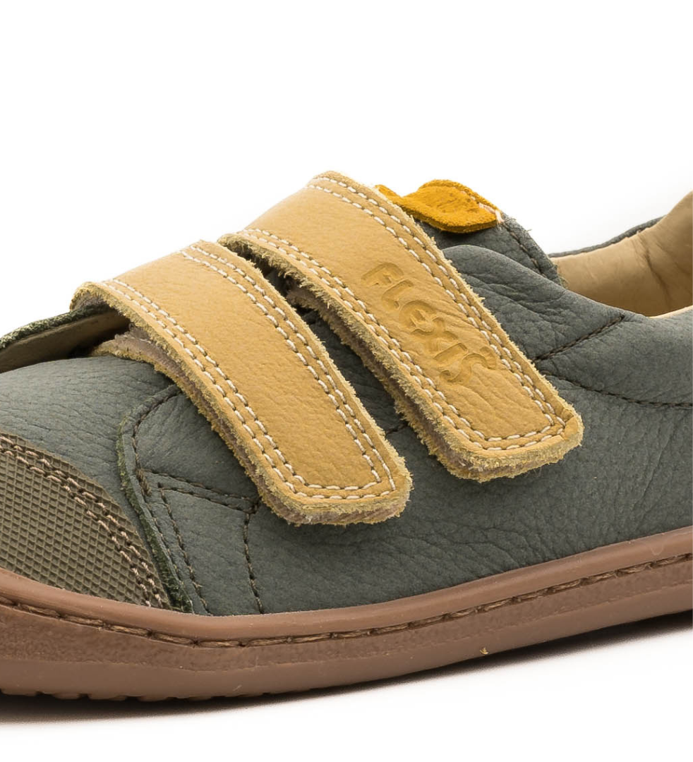 Si buscas unas zapatillas respetuosas para el día a día de tu peque, no puedes perderte las zapatillas barefoot Kaki de Flexi Nens (modelo 9000R). Estas zapatillas tienen los velcros en color amarillo, que queda genial con el color bosque. Son perfectas para la temporada de otoño e invierno. Quedan genial con todo tipo de ropa.
