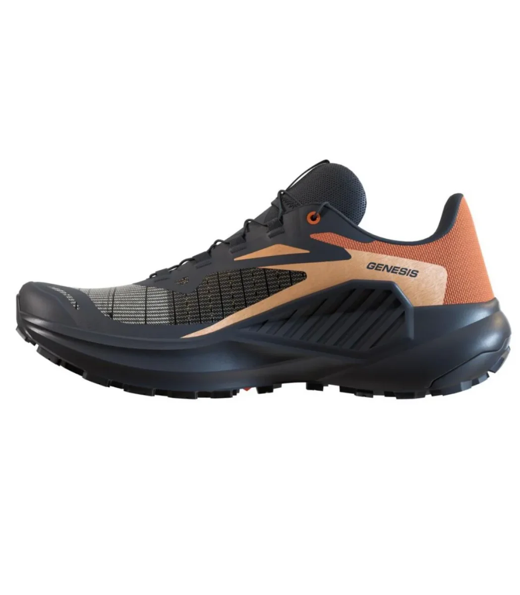 Genesis es una cómoda zapatilla de running de montaña que potencia la confianza, a la par que es dinámica y ágil y está lista para la aventura.