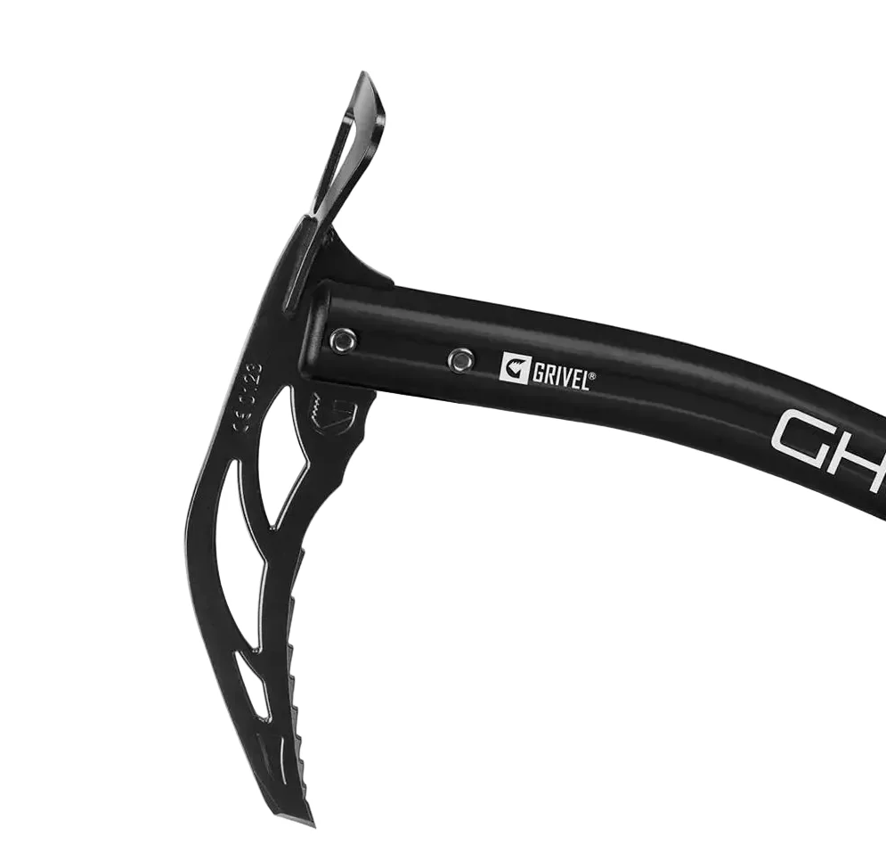 El piolet Grivel Ghost Evo es un hacha liviana que tiene un pico clásico y un eje ligeramente curvado. La hoja es ergonómica para mayor comodidad al sujetarla. El eje G-Bone, con una forma especial con ranuras laterales, permite una mayor resistencia con un menor espesor. Garantiza un gran agarre ergonómico a lo largo del eje. Disponible en 45 y 50 cm.