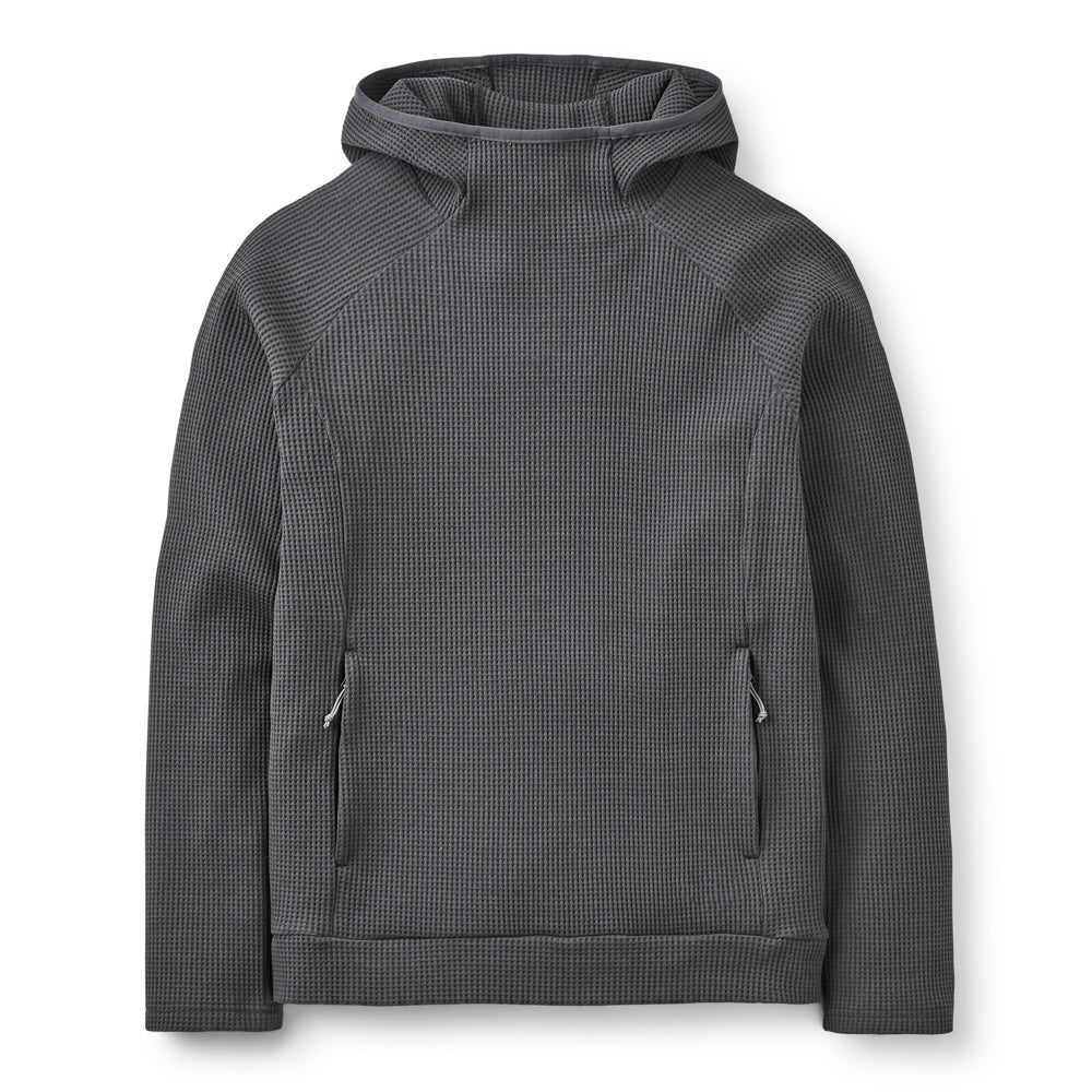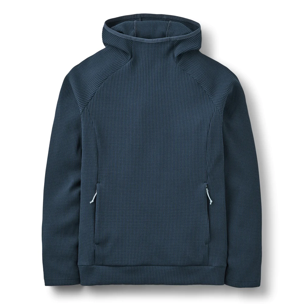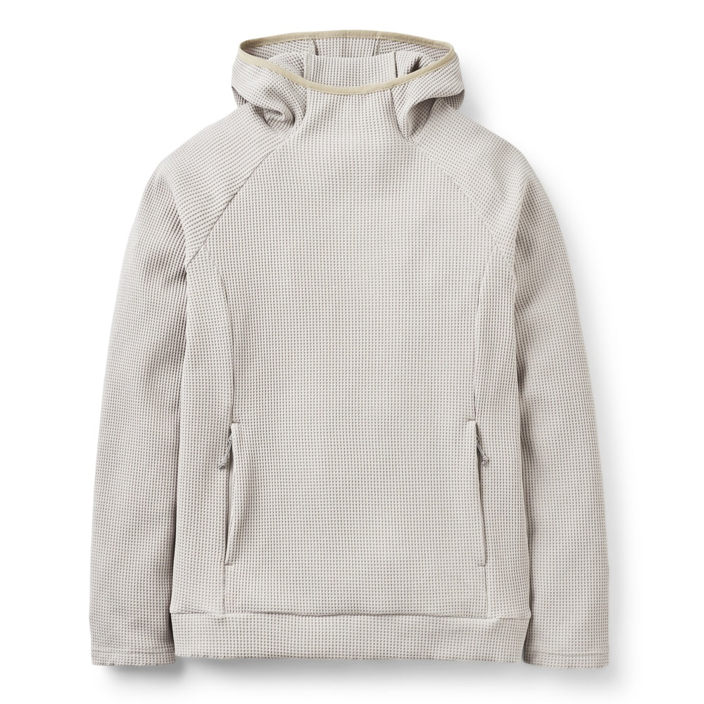 Esta prenda es una sudadera con capucha diseñada para ofrecer comodidad y calidez en climas fríos. Está confeccionada con un tejido de punto texturizado que proporciona una excelente retención de calor, ideal para actividades al aire libre o para uso casual. La capucha ajustada ofrece protección adicional contra el viento y el frío, asegurando que la cabeza y el cuello se mantengan abrigados.