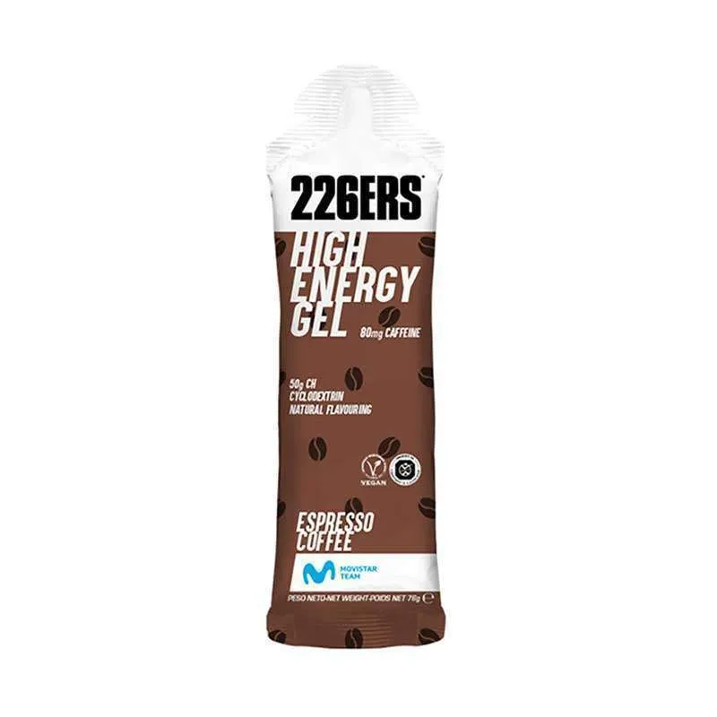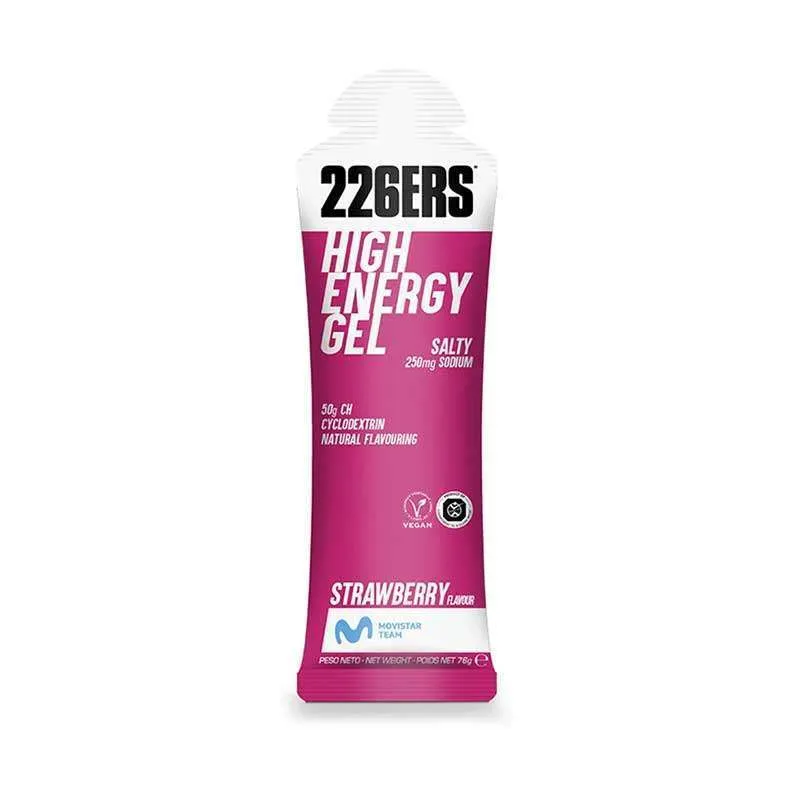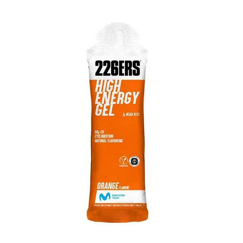 High Energy Gel cuenta con el sello Cologne List, es un gel energético con ciclodextrina, para conseguir una liberación de energía prolongada, con aromas naturales y un alto aporte de hidratos de carbono (50g), 200 Kcal por gel.