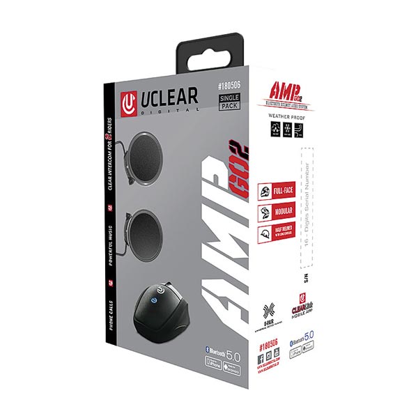 El sistema de audio de casco UCLEAR AMP Go 2 full-duplex Bluetooth® es ideal para comunicaciones de un solo motorista y grupos pequeños. Con el sistema de parlantes Boost 2.0 integrado, puede disfrutar de una calidad de audio excepcional mientras conduce por la carretera. Nuestra exclusiva tecnología ABF de cancelación de ruido elimina prácticamente todo el ruido de fondo, mientras que nuestros algoritmos DSP patentados triangulan el «punto óptimo» de su voz para producir una voz clara para llamadas telefónicas y conversaciones a través del intercomunicador. El UCLEAR Digital AMP Go 2 se basa en la popular serie Bluetooth® AMP. El AMP Go 2 tiene conectividad Bluetooth® 5.0, ClearLink y audio mejorado. ¡El AMP Go 2 es simplemente el producto de nivel de entrada con más funciones disponibles!