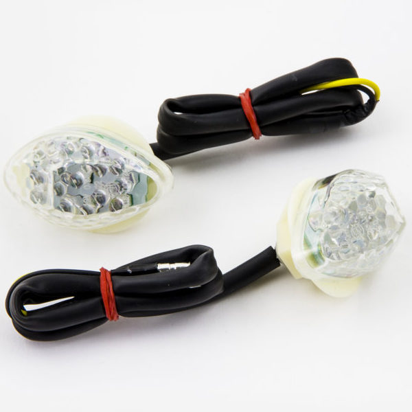 Potencia la imagen Racing de tu moto con el juego de 2 intermitentes integrados Puig 4487K para el carenado. Intermitentes homologados LED con cristal láser.