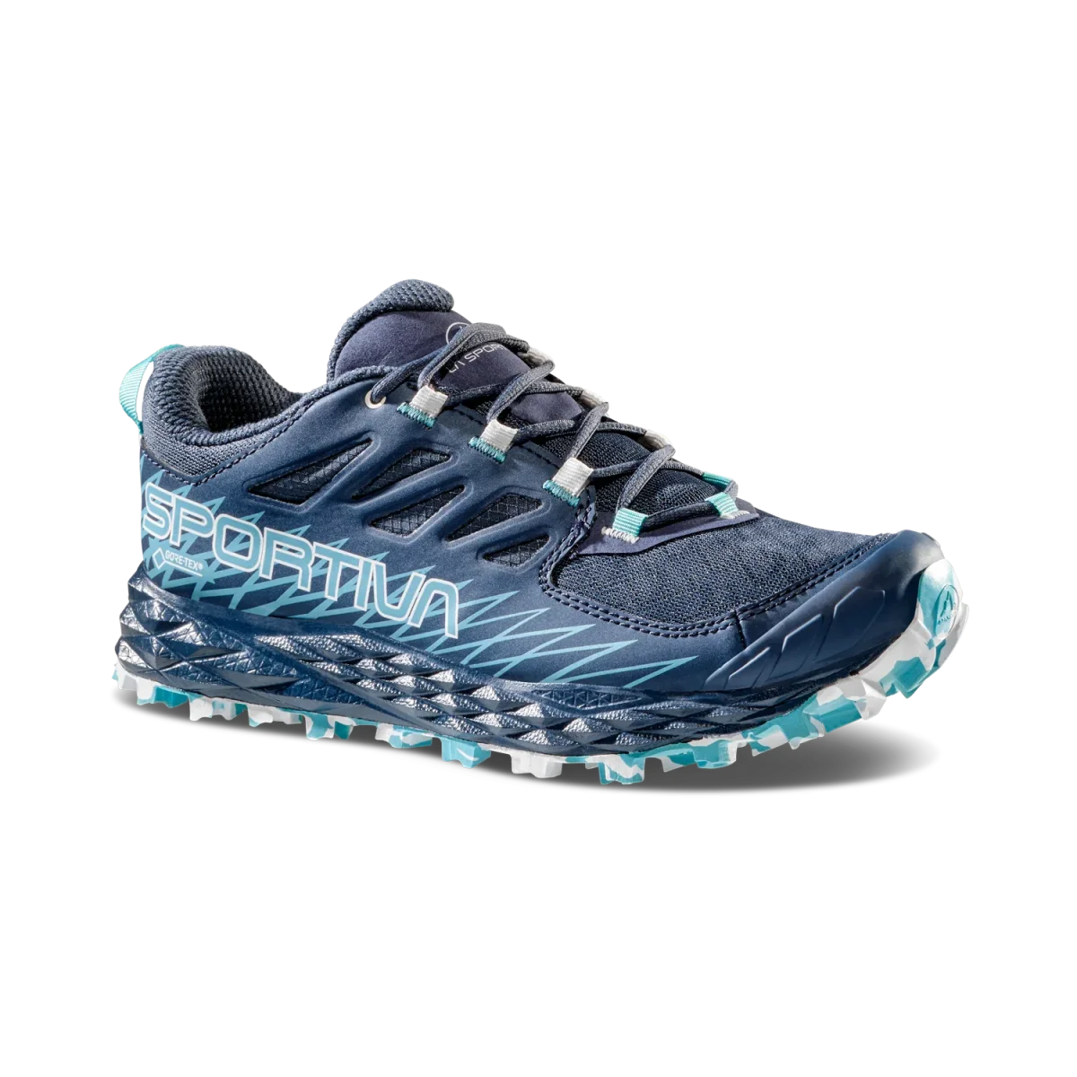 Las zapatillas de trail running para mujeres La Sportiva Lycan Gtx están diseñadas para corredoras en terrenos difíciles. Ofrecen seguridad, comodidad y rendimiento para entrenamiento de media distancia en invierno.