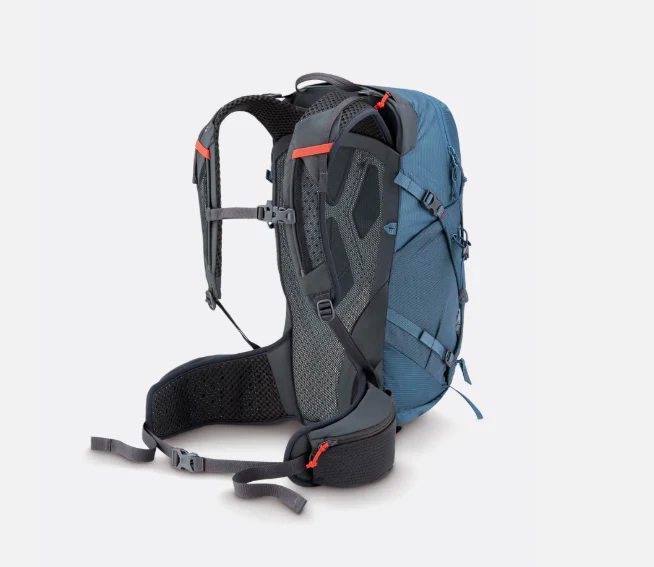 - Panel trasero de ABS moldeado al vacío, precurvado y con estructura semirrígida. Mantiene la forma de la mochila mientras se flexiona con el cuerpo.