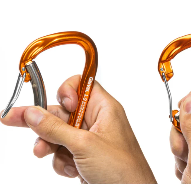 Apertura mediante sistema de puerta de alambre Twin-Gate, que no requiere ninguna maniobra adicional (por ejemplo, atornillado), por lo que es más seguro y rápido que otros sistemas Además, permite evitar aperturas accidentales que pueden producirse por ejemplo por contacto con la roca, por paso incorrecto de la cuerda por presión involuntaria de la mano. Dos aberturas también permiten una mayor resistencia que una. Finalmente, mantiene su funcionalidad en el tiempo y no teme la presencia de polvo, tierra, hielo como otros sistemas. La combinación de puerta-alambre facilita su uso incluso con guantes y permite acoplar fácilmente todo tipo de dispositivos (frenos). Probado individualmente, con la fecha de la prueba y el número progresivo marcado con láser.