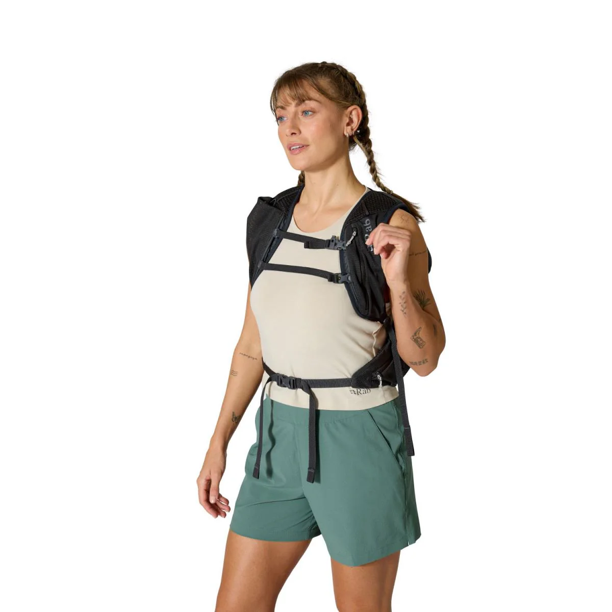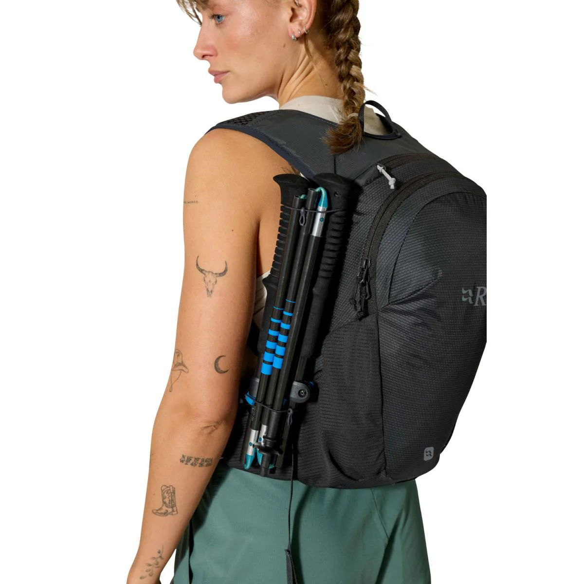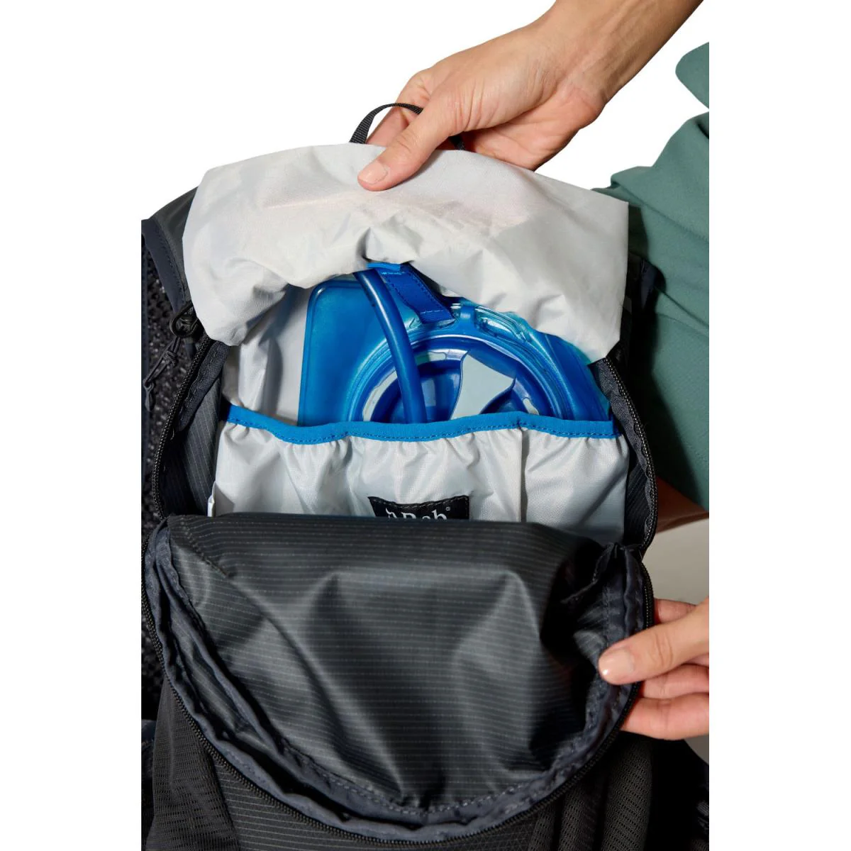 Fabricada con resistente tejido ripstop de nylon Robic con revestimiento impermeable, protege el contenido de la humedad y el desgaste. El panel trasero de EVA flexible proporciona comodidad durante el transporte, mientras que la correa de esternón doble ofrece una sujeción óptima incluso a ritmos rápidos.