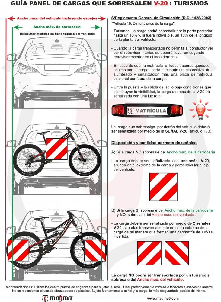 Concebida para señalizar el transporte de cargas y bicicletas cuando sobresalgan por la parte posterior de nuestro vehículo, cumpliendo con el Reglamento General de Circulación (R.D. 1428/2003).