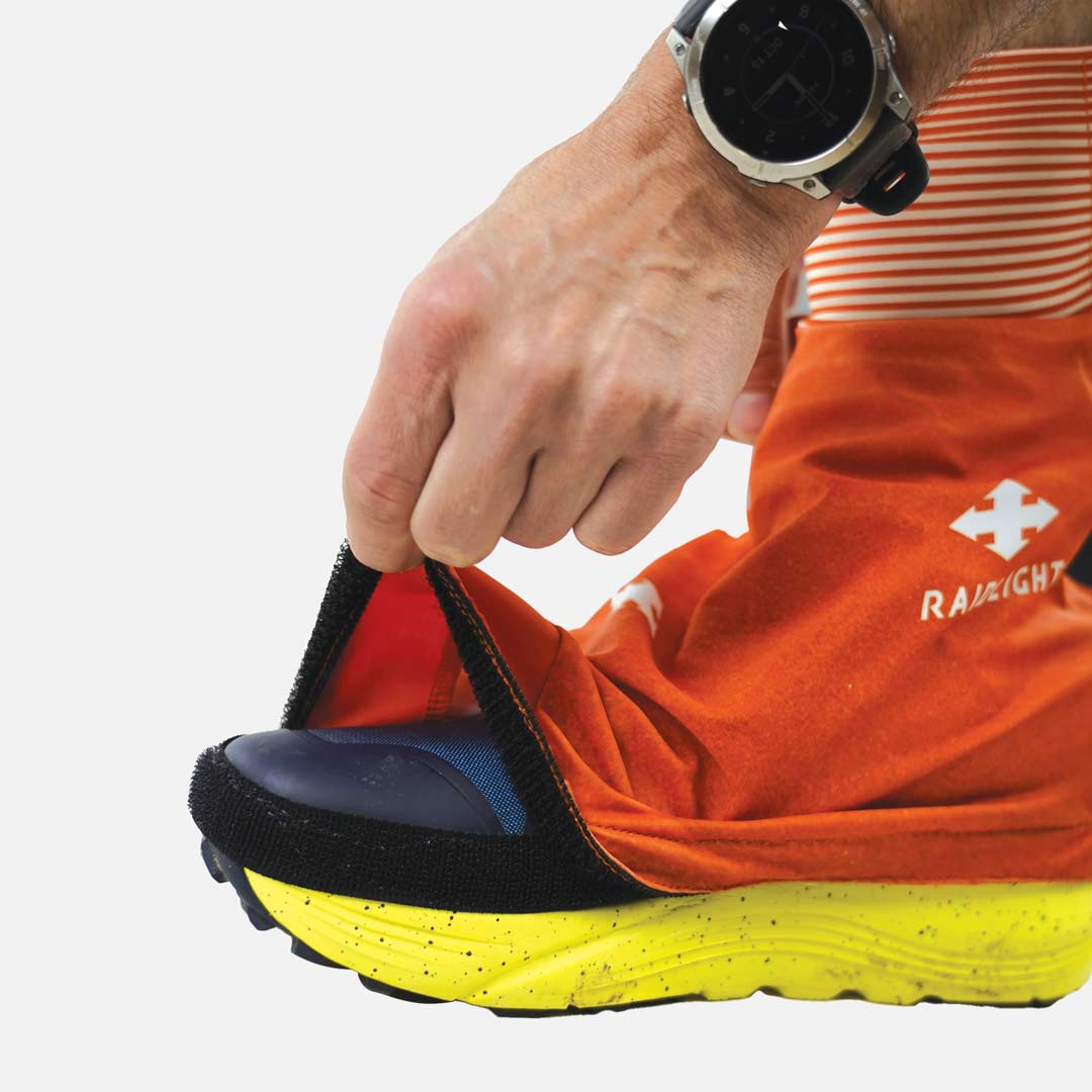– Cinta de velcro que debe coserse a la bota para fijarla. Desaconsejamos encarecidamente pegar la polaina a la zapatilla de trail, ya que hemos comprobado en varias salidas que el pegamento no es resistente al calor.