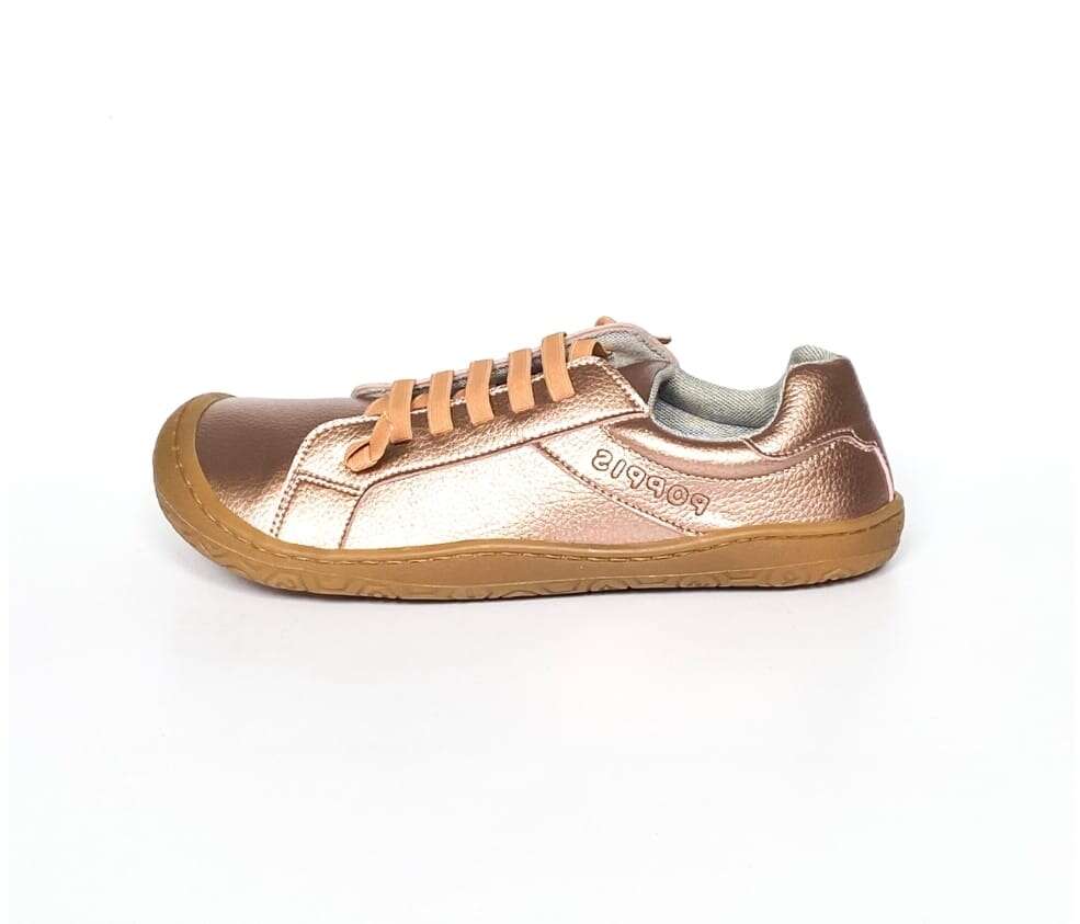 La suela tiene zero drop, es igual por delante que por detrás, y tiene 4mm de grosor. Esto permitirá que estés en contacto casi directo con el suelo, lo que te dará la oportunidad de ser consciente de cada paso a la vez que tu pie recupera su forma natural. La suela no tiene aditivos provenientes del petróleo (Poppis utiliza aceites vegetales).