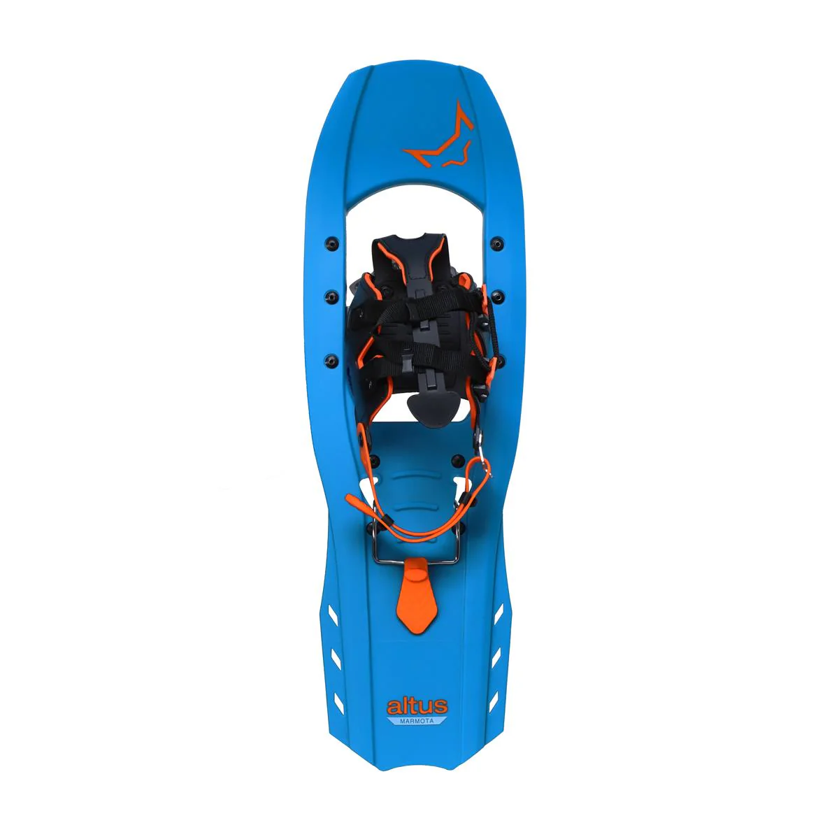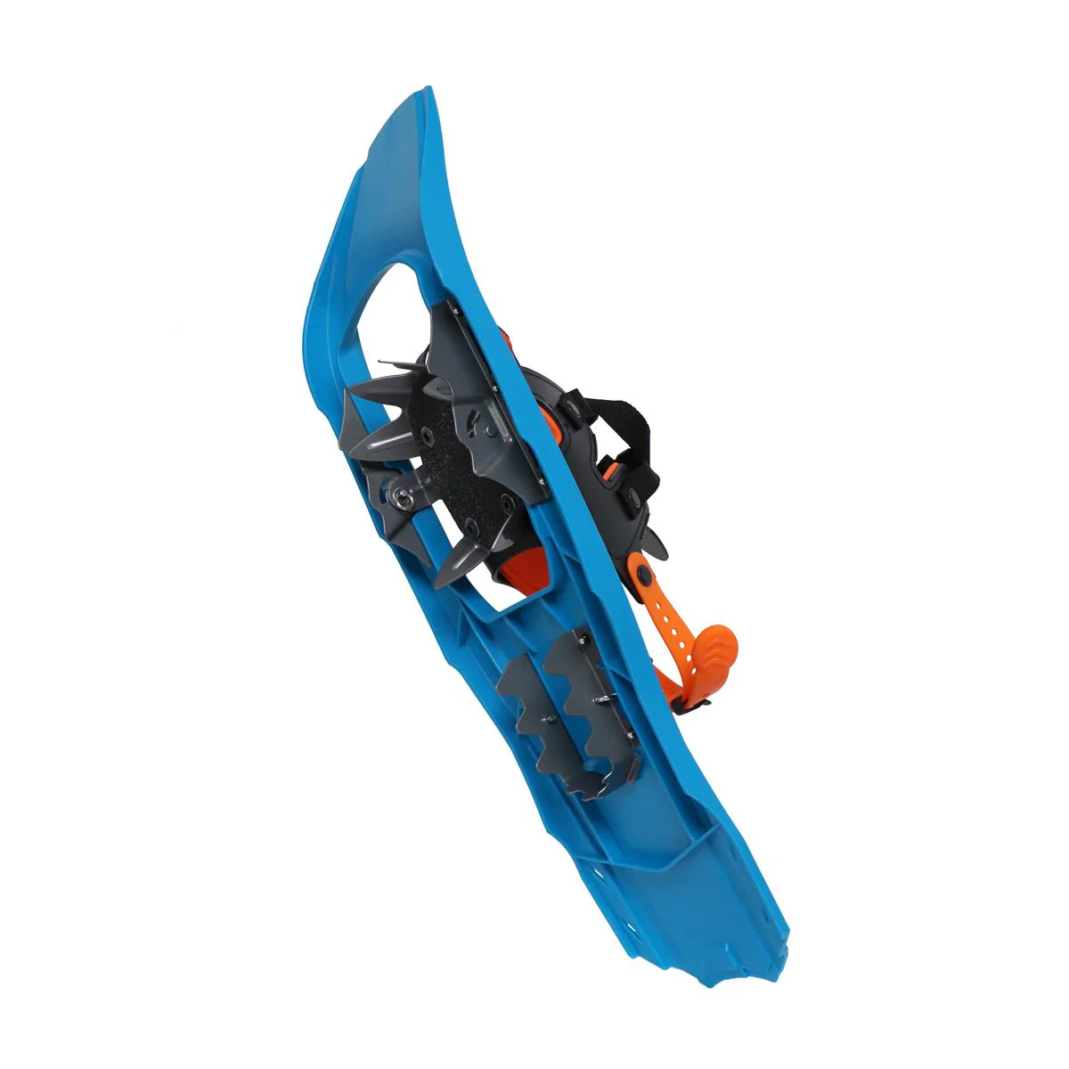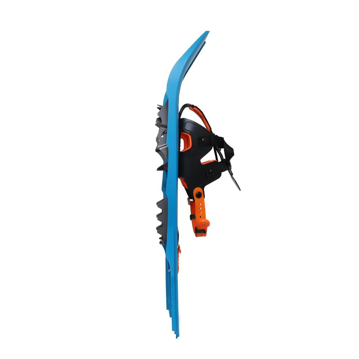 Raqueta de nieve para travesía invernal provistas con fijación con una lengua que sale de la puntera y sube por el empeine de la bota, que a su vez esta sujetada en dos puntos por las cintas horizontales de cierre, lo que hace que no se desplace. Gracias a esto, se mejora la fijación de la bota evitando el desplazamiento hacia delante.
