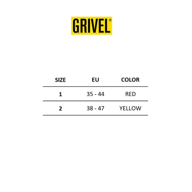 – Tallas disponibles: talla 1: de 35 a 44 (rojo), y talla 2: de 38 a 47 (amarillo)