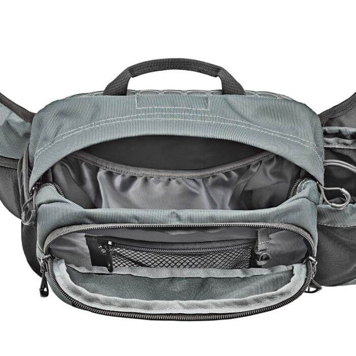 - 1 bolsillo con cremallera y otra en malla en el cinturón.