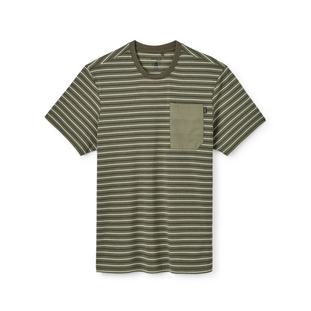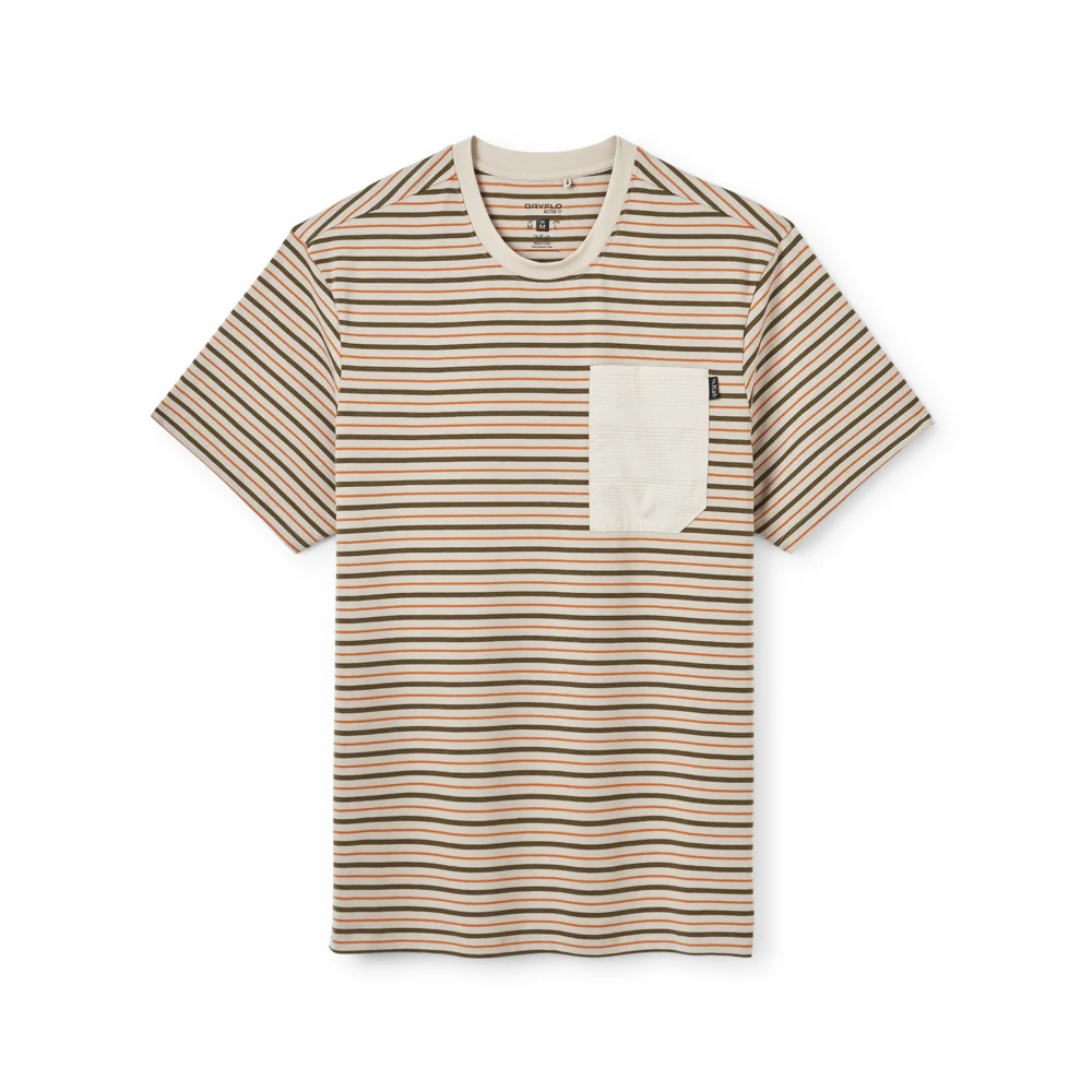 La camiseta cuenta con un cuello redondo clásico que se adapta bien a diferentes estilos y ocasiones. Un detalle destacado es el bolsillo en el pecho, que añade un elemento funcional y decorativo al diseño general. Este bolsillo está discretamente adornado con una pequeña etiqueta de la marca, que le da un toque de autenticidad.