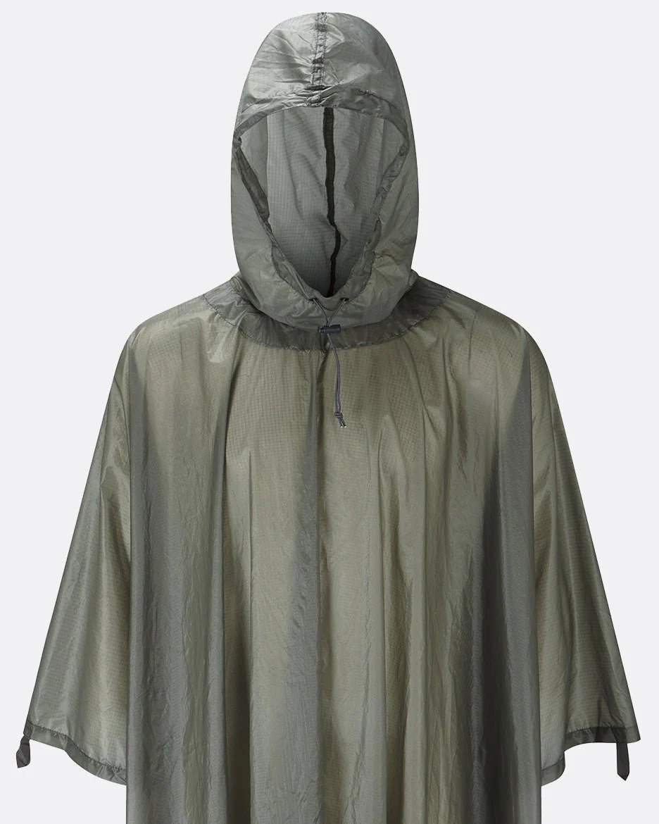El cordón de choque en el borde inferior permite que el poncho se ajuste alrededor de la parte inferior de la mochila para mayor seguridad contra el viento