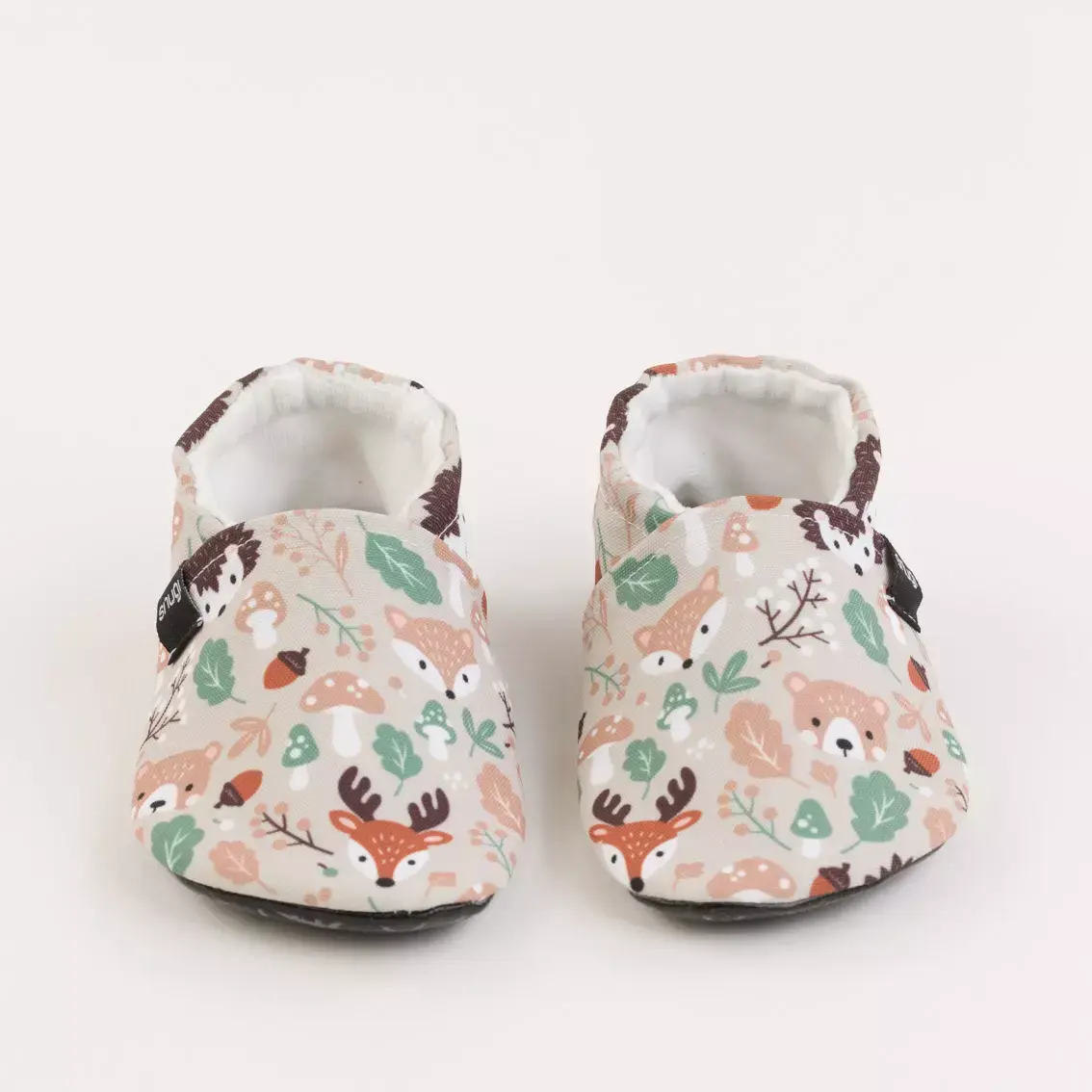 Todos los modelos de zapatillas respetuosas para estar en casa para bebés de Snugi poseen una goma elástica que permite ajustar la babucha al tobillo, sin dejar que la zapatilla se salga del pie. Este modelo no tiene contrafuerte. Si la goma te quedase demasiado suelta puedes cortarla un poco y volver a coserla para un mejor ajuste.