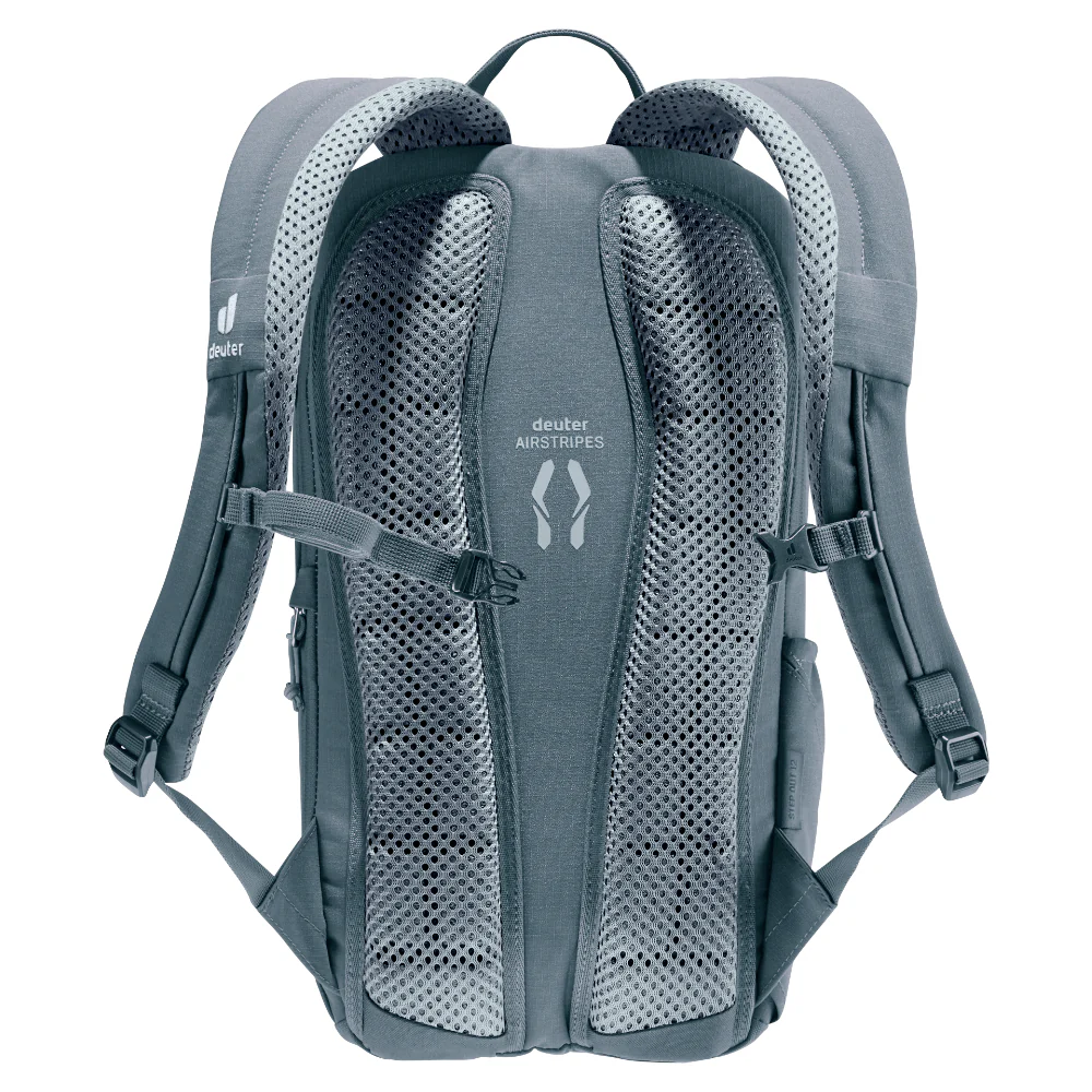 La mochila Stepout 12 destaca por su comodidad y ventilación gracias a las correas para los hombros perforadas y ergonómicas, junto con el sistema de espalda Airstripes de Deuter.
