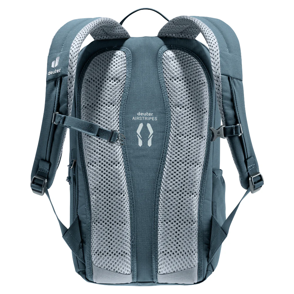 Gracias a los tirantes perforados y ergonómicos y al soporte lumbar del sistema de espalda Airstripes, la Stepout destaca por su máxima circulación de aire y su gran comodidad. La gran abertura con cremallera en U en la parte superior de la mochila, el bolsillo lateral para el móvil y el bolsillo lateral elástico garantizan un acceso rápido a los objetos importantes. En el interior, el compartimento para documentos y portátil proporciona una buena organización. El tejido del producto, sin PFC y con certificación Green Button bluesign®, está fabricado a partir de veinte botellas de PET recicladas de 0,5 litros y cumple la norma bluesign®.