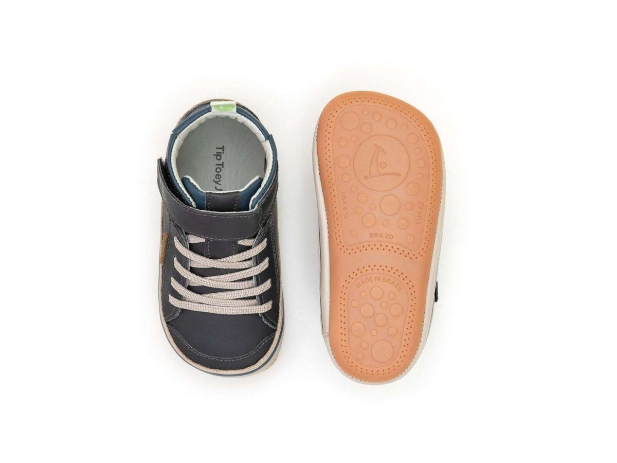 Alley son unas botas respetuosas de Tip Toey Joey aptas desde primeros pasos hecha de piel extra suave y maleable producida según los criterios internacionales REACH. La suela está hecha de caucho natural suave y flexible y es totalmente antideslizante.