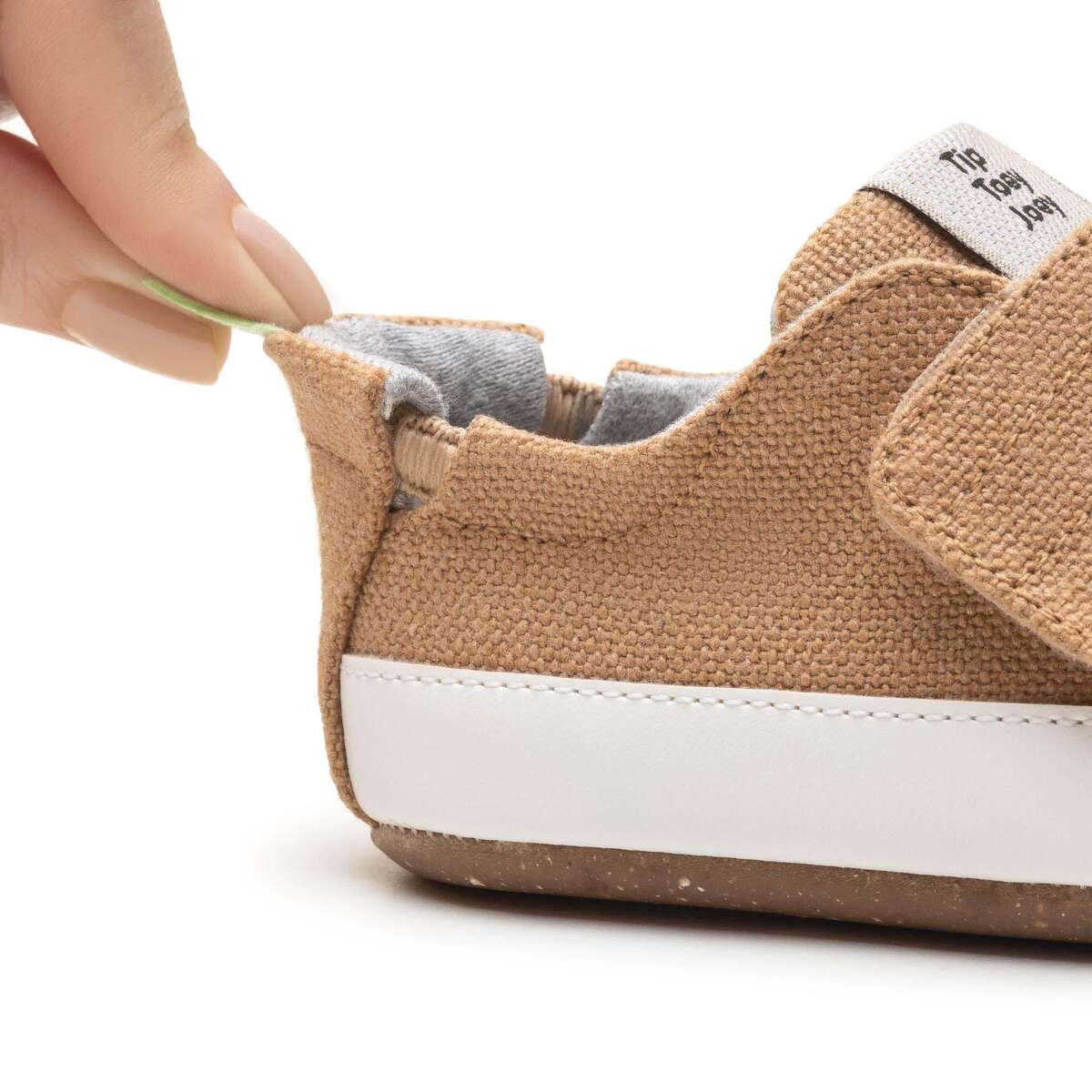 Todos los modelos de de calzado respetuoso para bebé de Tip Toey Joey poseen una banda elástica ” Stretch&Stay ” que permite el ajuste del talón, sin dejar que el zapato se salga del pie mientras el niño experimenta libremente los movimientos esenciales para levantarse y dar sus primeros pasos. Este modelo no tiene contrafuerte.