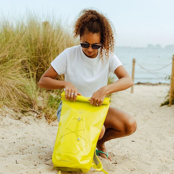 Si tu aventura va a estar pasada por agua, la Transporter Waterproof 18 será la mejor aliada gracias a su capacidad para repeler el agua. El cierre de tipo rollo con protección IPX6 evita que entre el agua, mientras que la sencilla organización interna ofrece hasta 18 litros de espacio para llevar el material protegido y en su sitio. Hemos incluido nuestro cómodo panel posterior AirScape, que garantiza un transporte más estable. Mantén tu equipo seco cuando vayas a pie, en bicicleta, sobre la tabla o en barco con nuestra Transporter Waterproof 18. Fabricada con materiales 100 % reciclados.