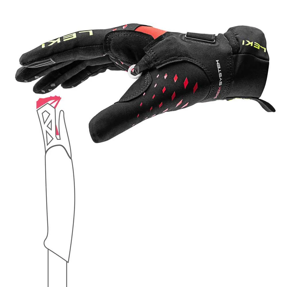 Los guantes ligeros pero cálidos se sienten como una segunda piel y garantizan una perfecta transmisión de potencia entre la mano y el bastón.